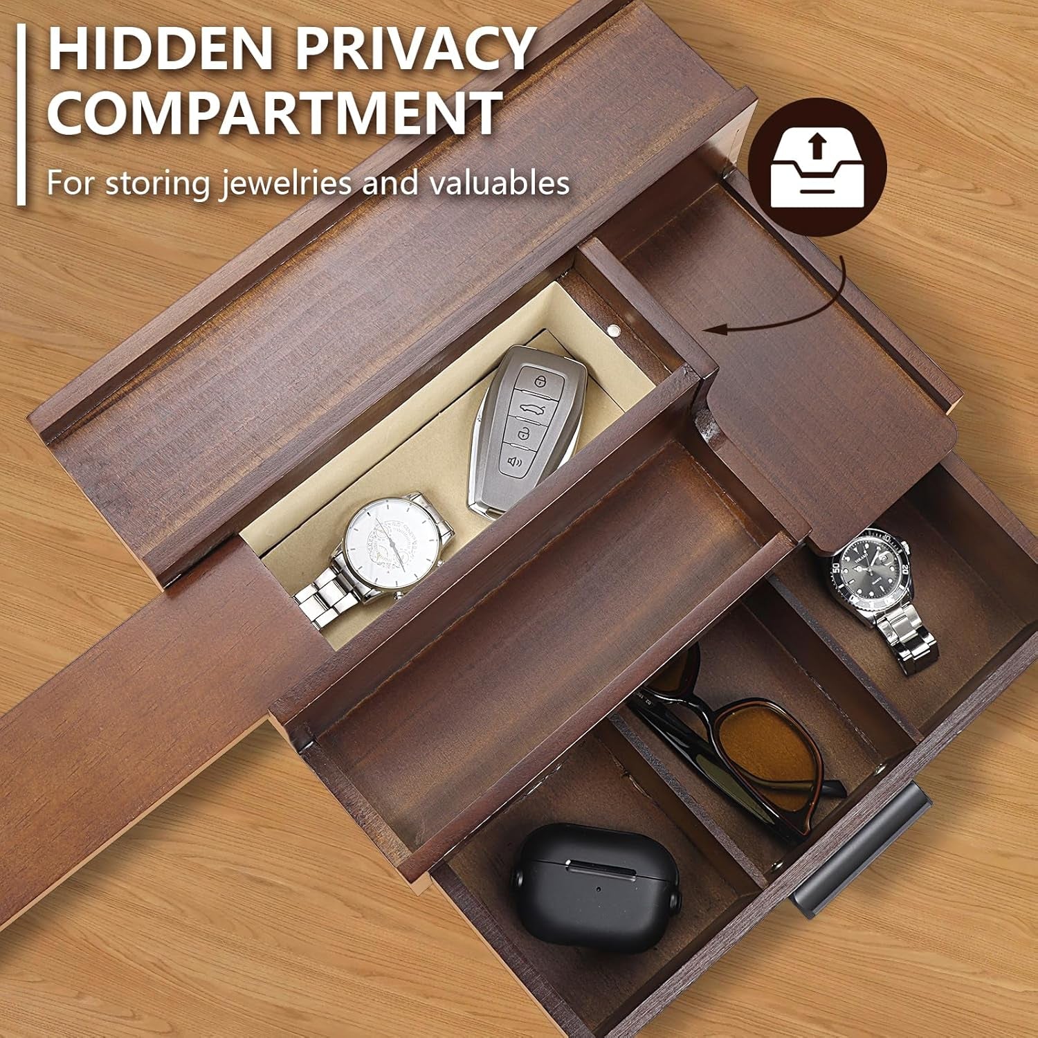 - 💝【SECRET COMPARTMENT】The cologne storage rack offers a extra hidden privacy compartment for storing and hiding secret items. And thanks to soft lining, which will be better protect jewelries and valuables, prevent from scuffs and scratch.