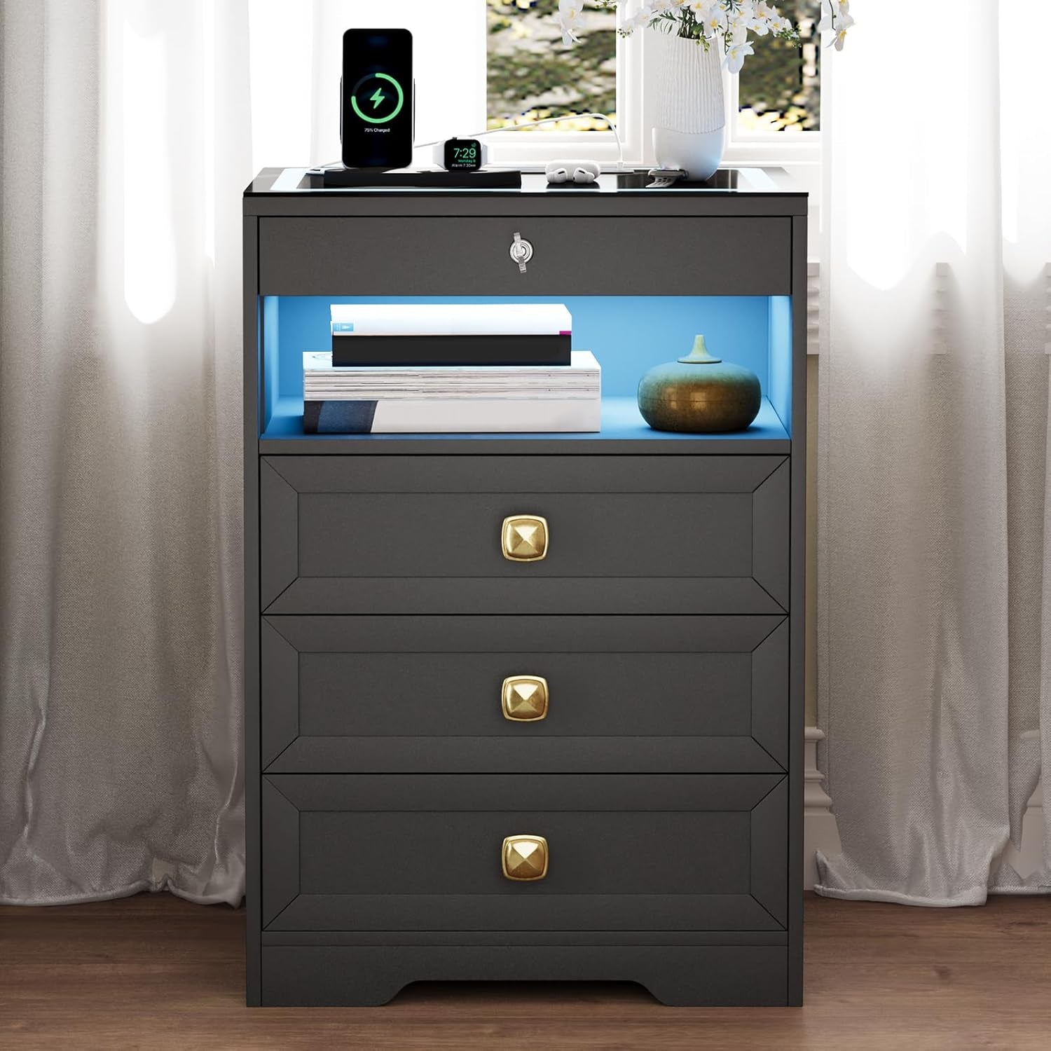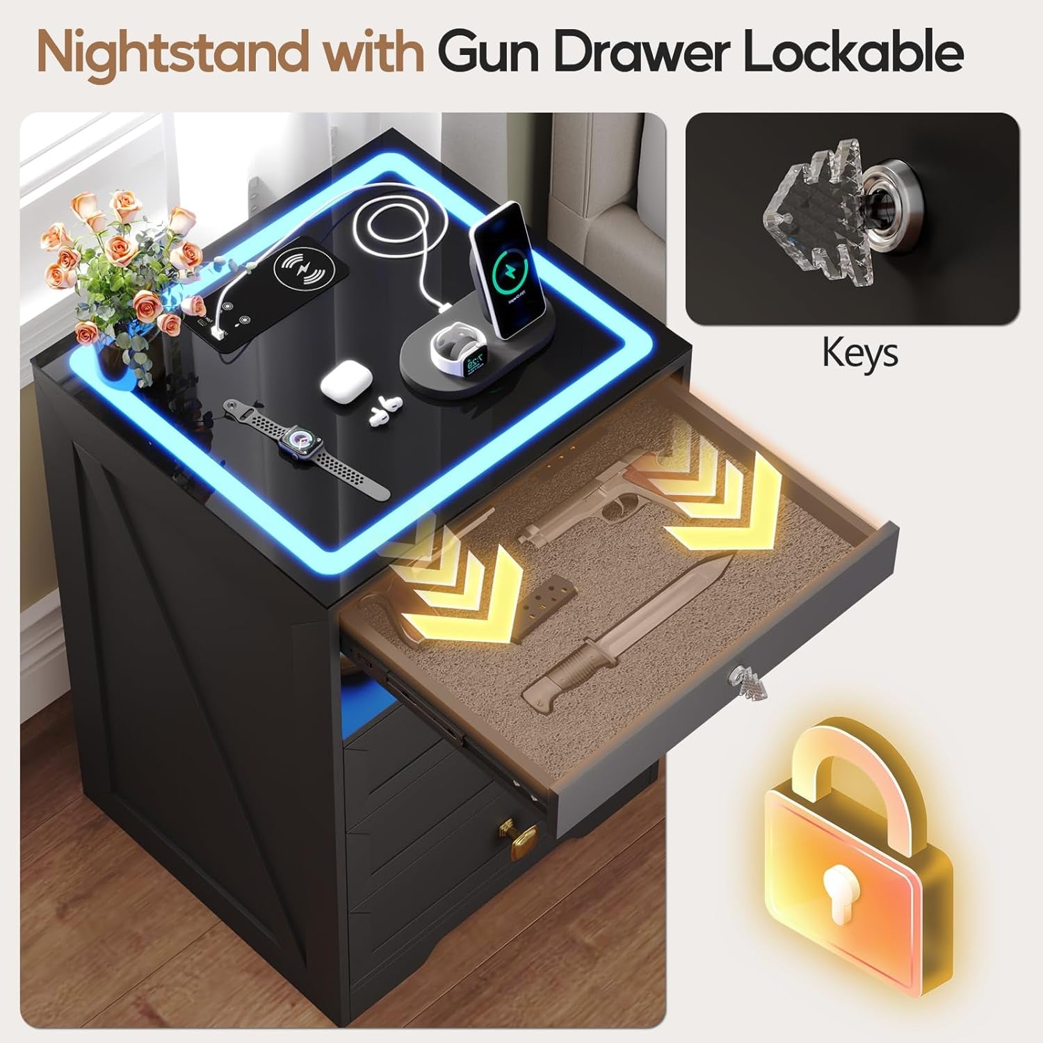 - Gun safe Nightstand:The smart night stand comes with a hidden lockable gun safe drawer, providing you with a secure storage space for your valuables. which is perfect for gun owners who value both privacy and convenience