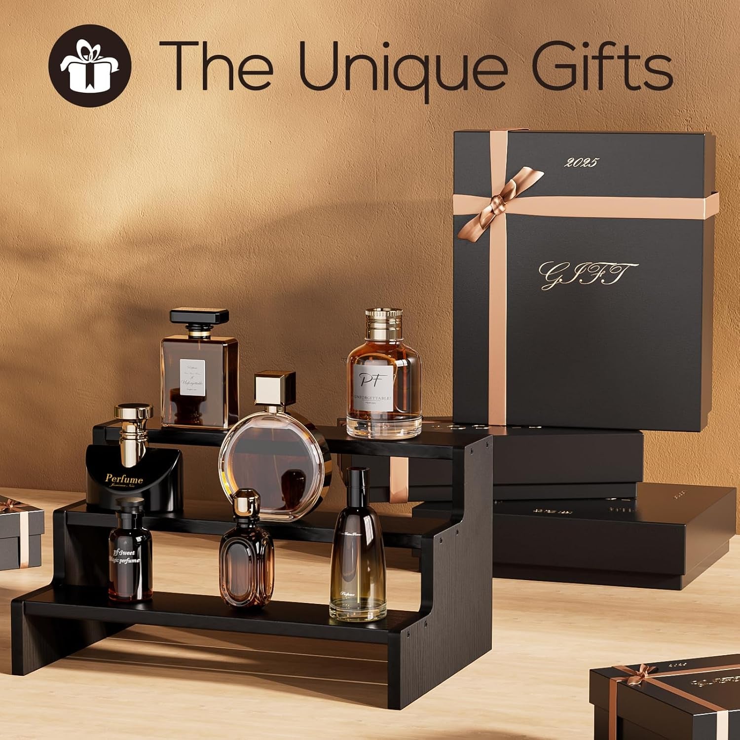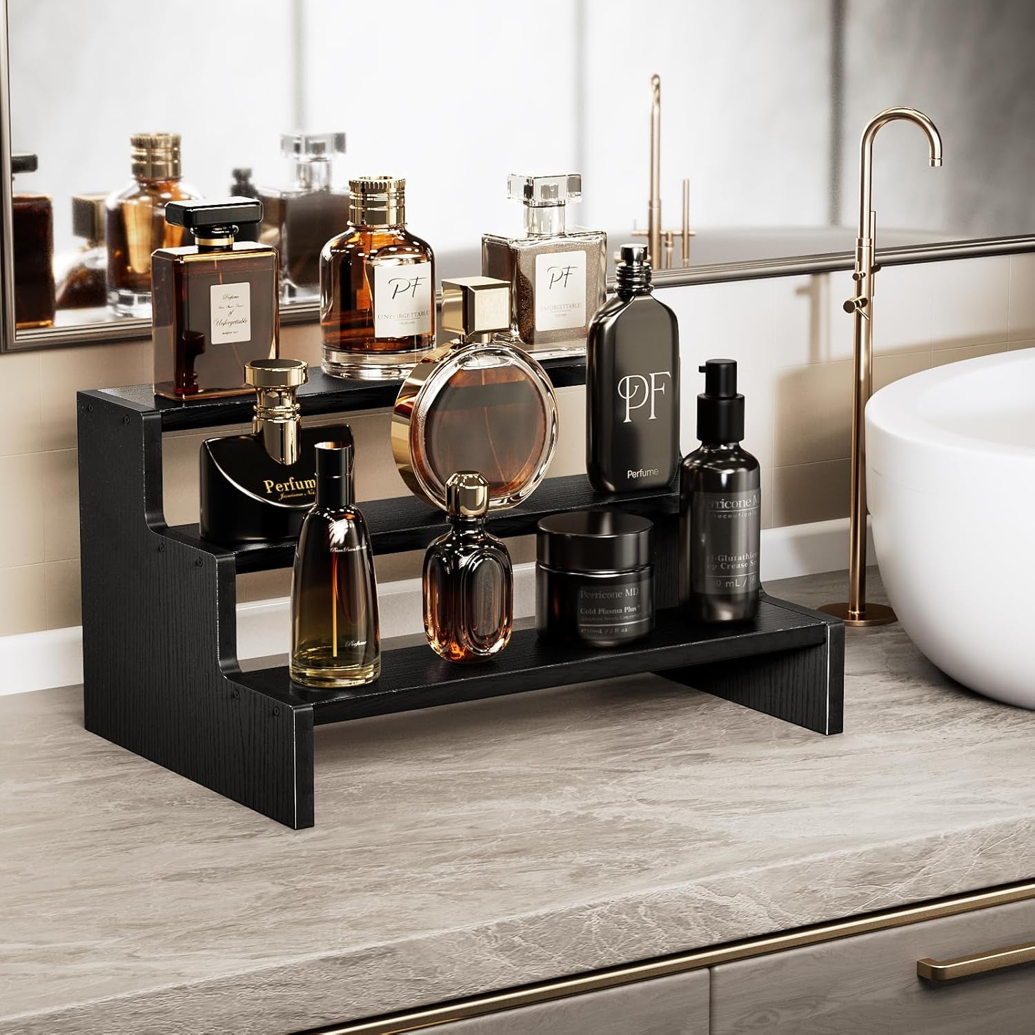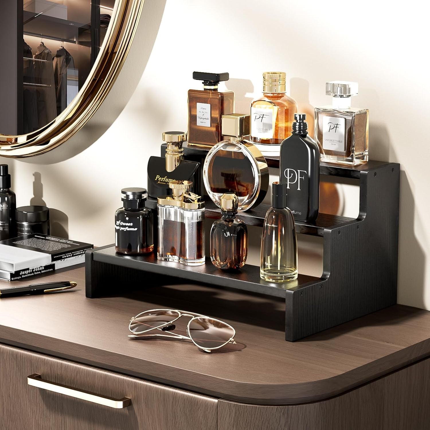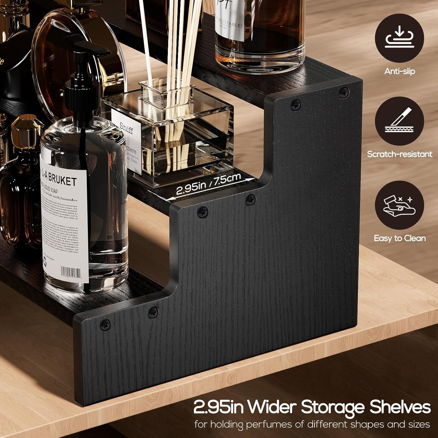 Wooden Cologne Organizer for Men, 3 Tier Perfume Organizer, Mens Cologne Stand Holder Storage, Display Riser Shelf Rack for Fragrances Candles Cosmetics Cupcake Figure Spice -Black
