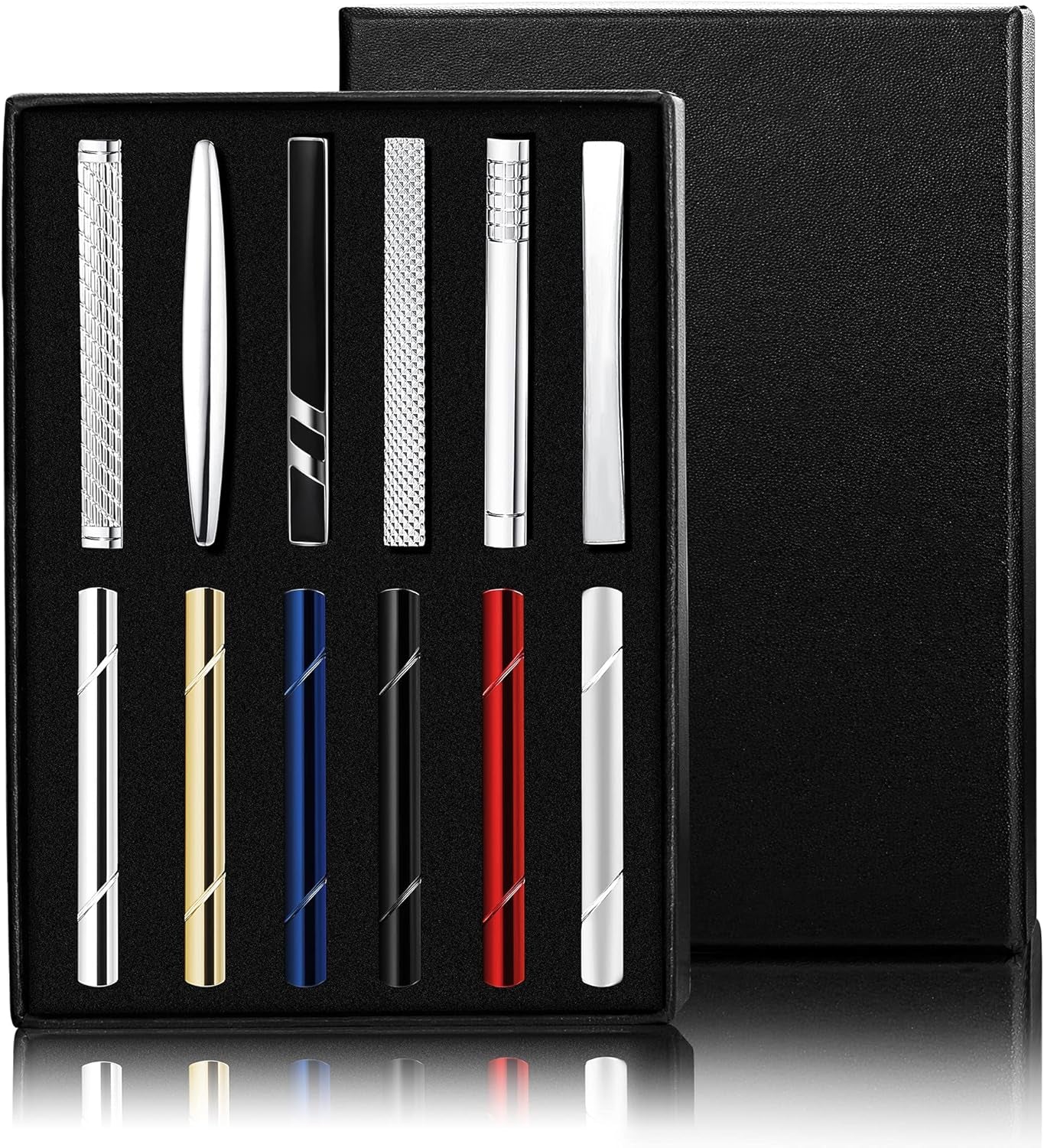 12Pcs Tie Clips for Men Silver Black 14K Gold Plated Tie Bar for Regular Ties Classic Tie Clasps Necktie Wedding Meeting Business Clips with Gift Box