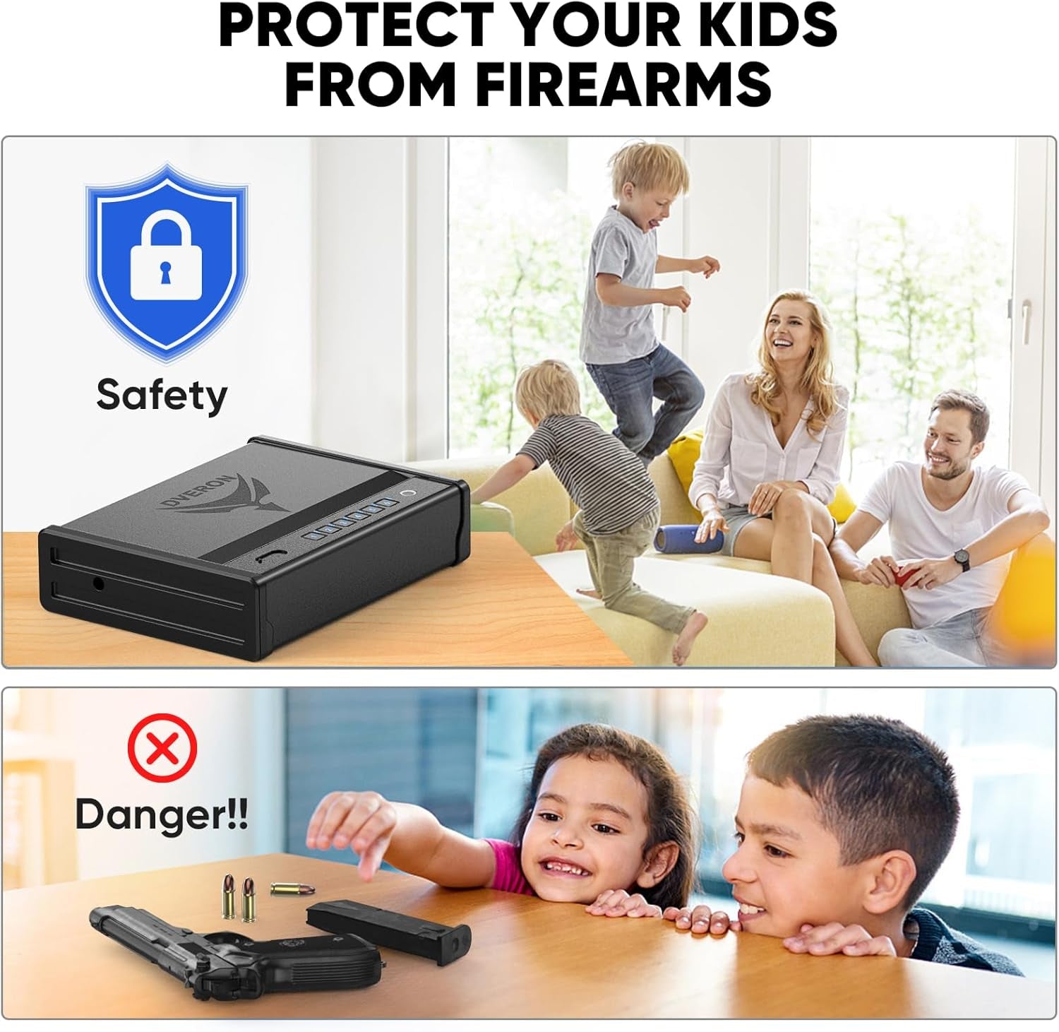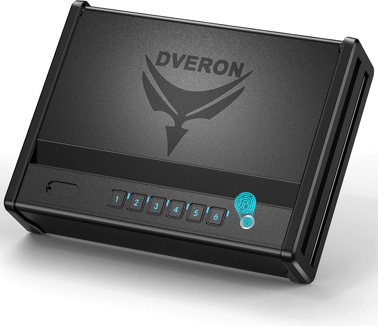 • The Dveron Portable Pistol Safe with Fingerprint Lock is a great solution for securely and conveniently storing handguns, passports, cash, credit cards, watches, jewelry, and more. It can hold 1 pistol and clips or 2 pistols. It is great for securing your firearm inside your personal vehicle and hotel. Also you can use it as your bedroom safe, living room safe, or closet safe.
