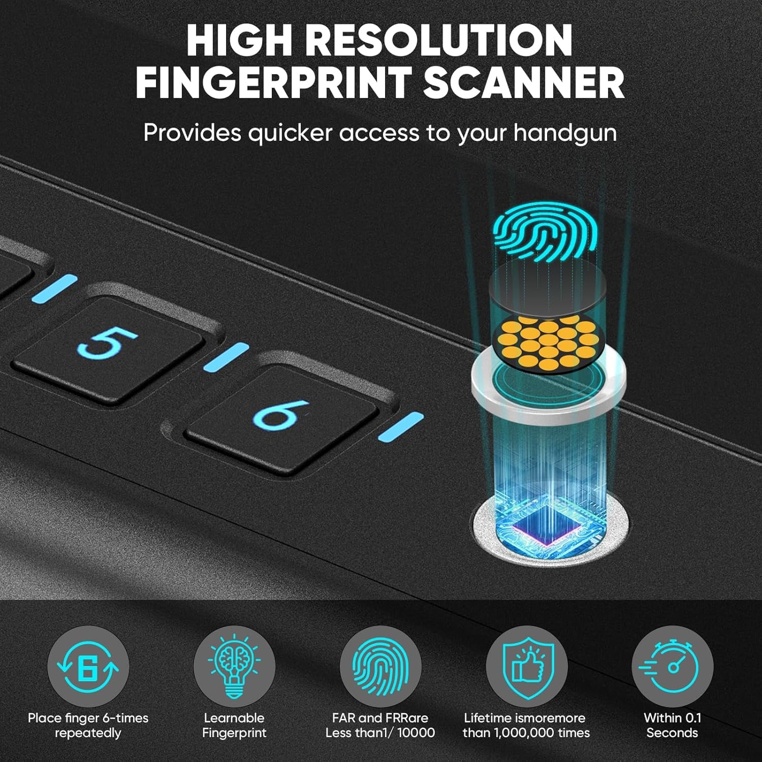 • Convenient Access: An advanced biometric fingerprint sensor allows you to access the safe quickly and easily with your fingerprint, storing up to 20 trusted fingerprints for authorized users. Allowing access with just a touch within 0.1 seconds for fast retrieval in an emergency.
