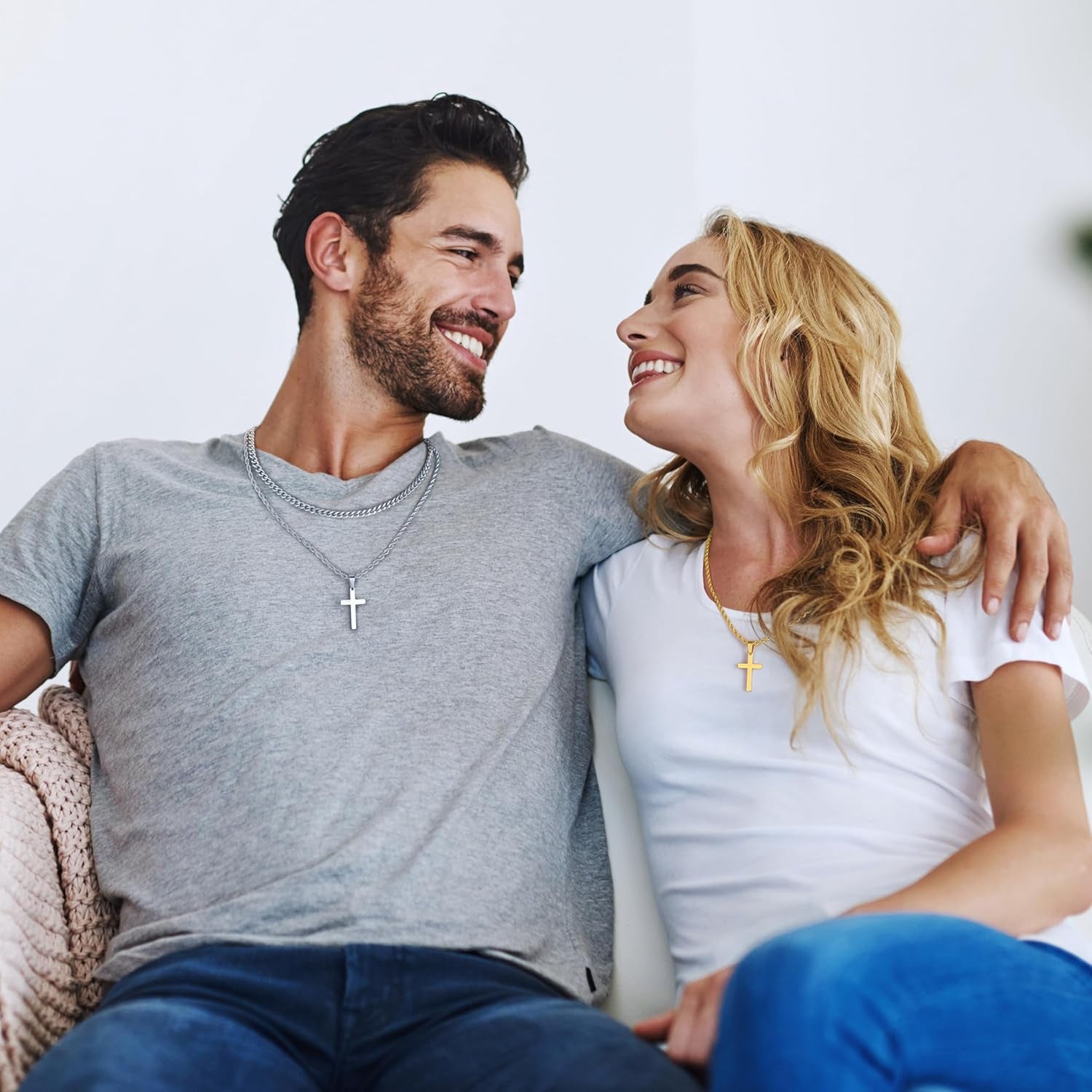Cross Necklace for Men, Gold Black Silver Mens Cross Necklaces Stainless Steel Cross Pendant Necklace Simple Jewelry Gifts Cross Chain Necklace for Men