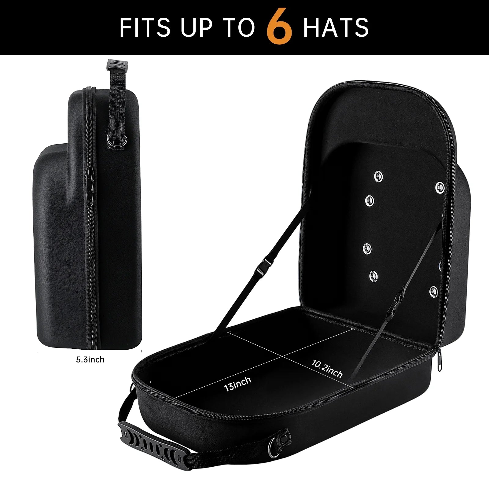 Features a non-slip handle and adjustable shoulder strap, this hat organizer for baseball caps is designed for easy portability whether you're flying, driving, or heading to the gym - Holds 6 Baseball Caps in Style: