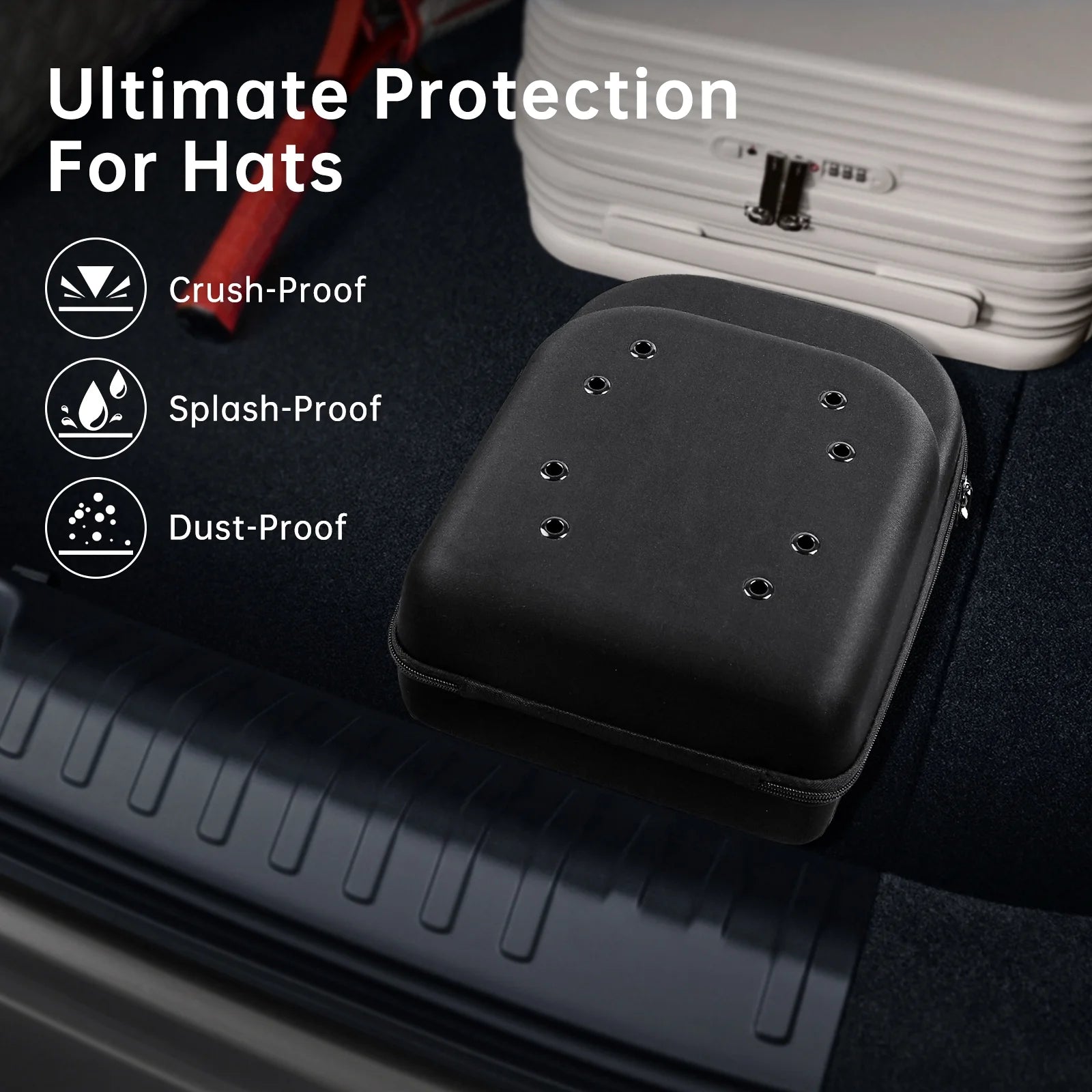 Protect your baseball caps in style with the FDDAI Hat Travel Case. Made from high-density EVA, this hard hat storage box shields your hats from dust, crushing, and moisture. The soft velvet lining and 8 air holes ensure your hats stay fresh and clean.