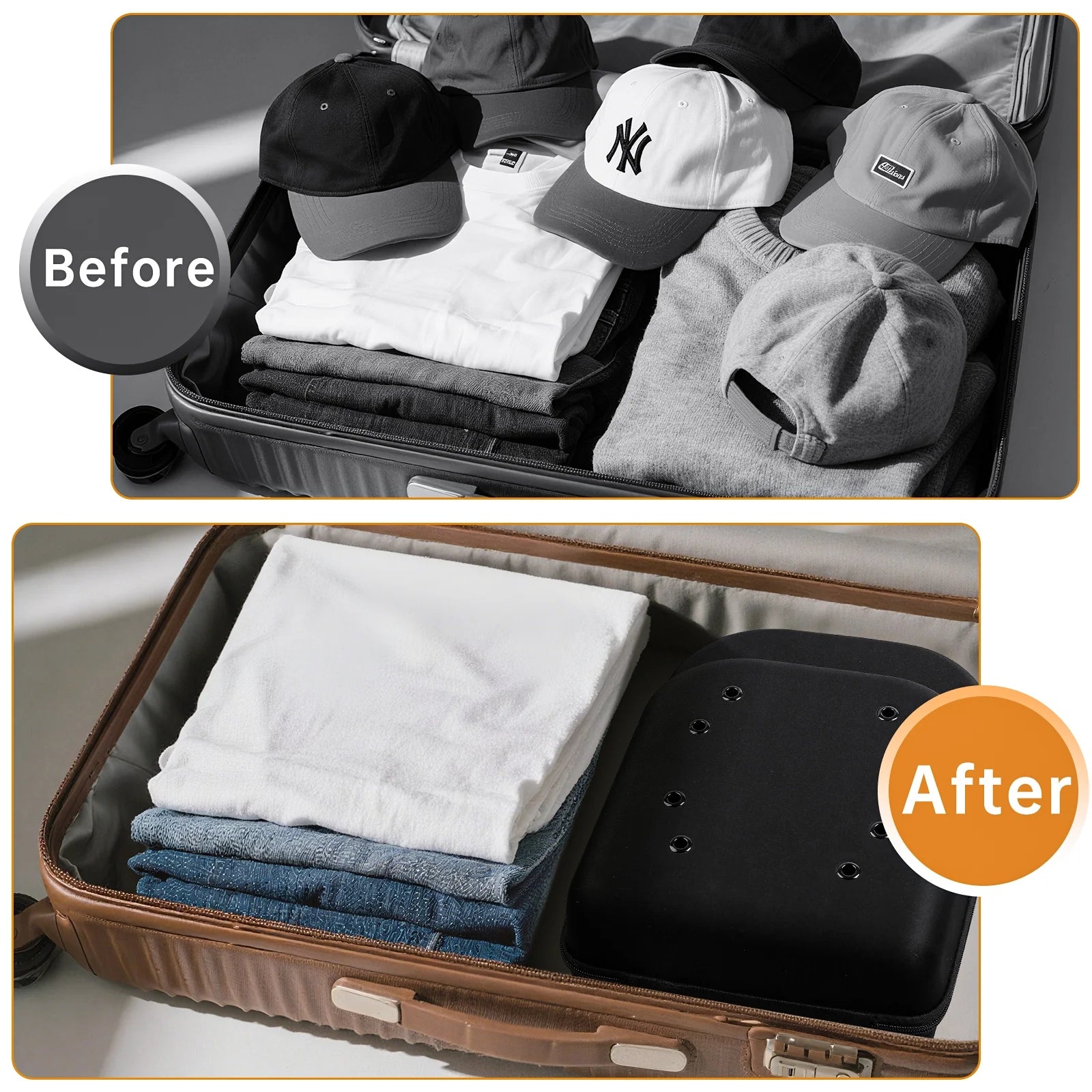 Whether you're a cap enthusiast or gifting a friend, this sleek hat organizer combines style and function. It’s a perfect solution for baseball cap storage at home or on the go—durable, compact, and travel-ready.