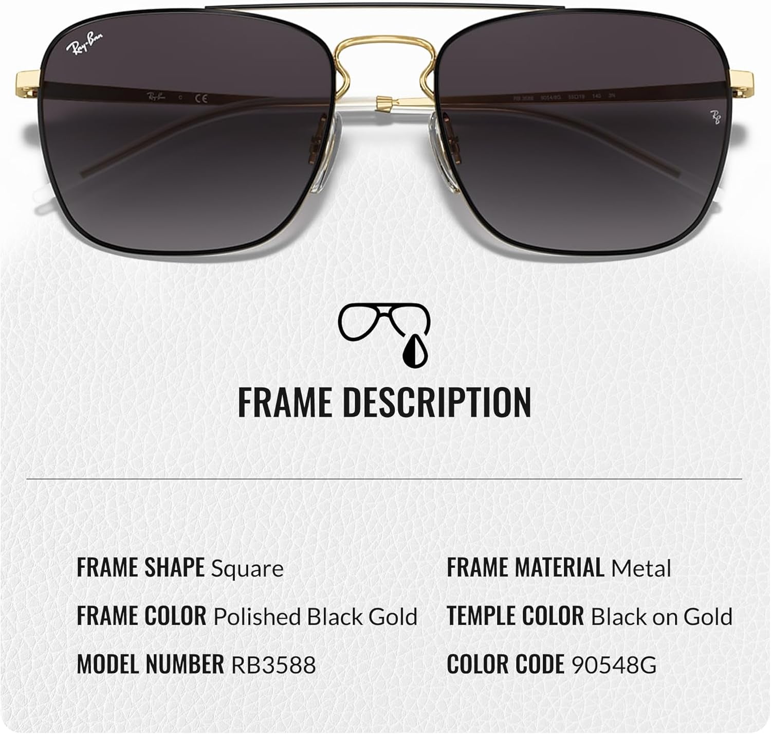 RB3588 Square Shaped Sunglasses for Men & Women with Official RAYBAN Eyewear Kit