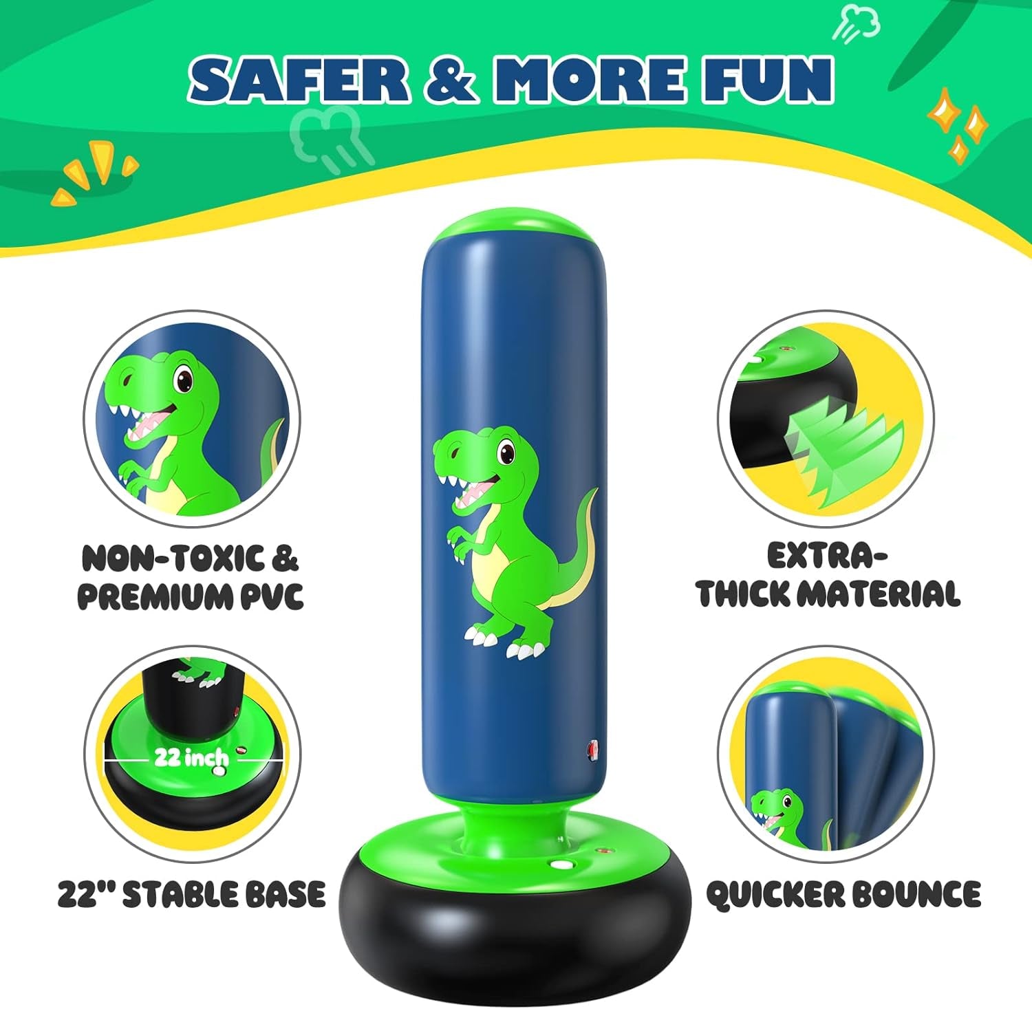 - Nice for Children Ages 3-6: With a total height of 120 cm/48 inches, this product can be tailored for children between the ages of 3-6. Your kids will come up with fun and inventive ways to interact with their inflatable boxing bags because of the adorable dinasour. QPAU dinosaur punching bag would be the great punching toy gift for toddler boys girls.