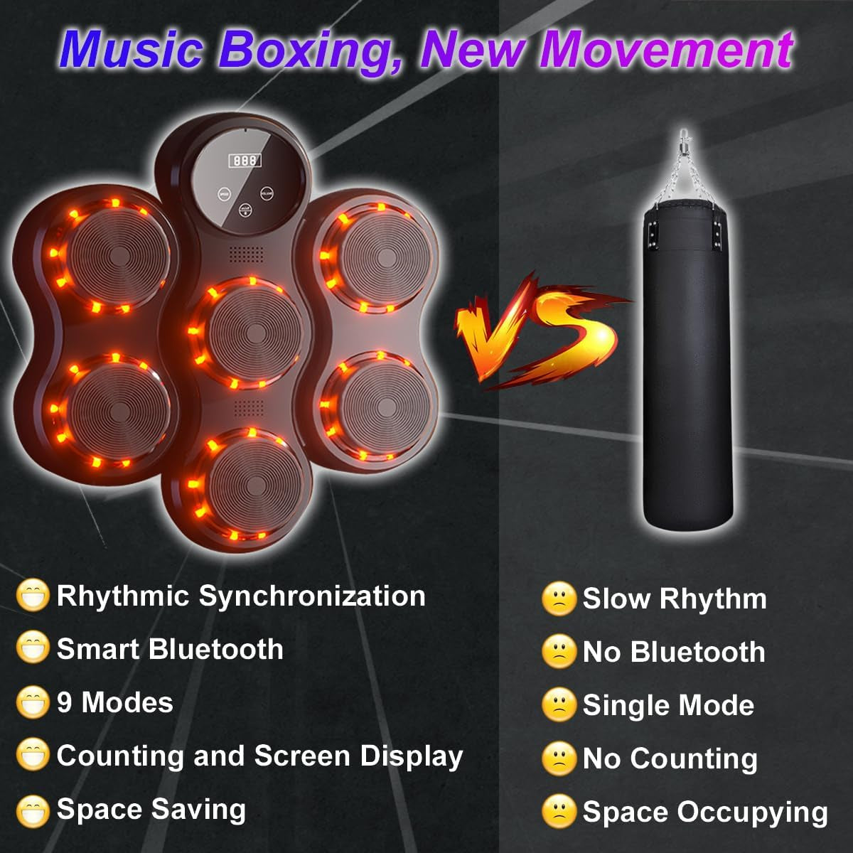 - 【Smart Music Boxing Machine】Music boxing machine adopts light and sound combined technology. Dynamic LED boxing light effects enhance our boxing experience. connecting our phone to play our favorite music during boxing training, and the stereo surround sound immerses us in the rhythm and melody, making our workout fun and motivating.