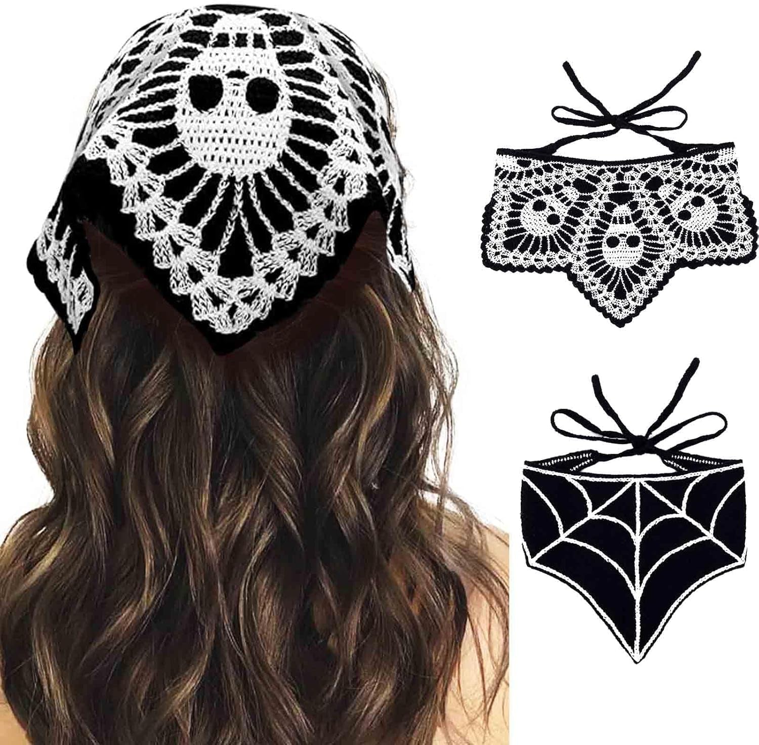 - Cosplay crochet hair scarves with skull necklace, sunglasses, goth bracelets and other Halloween accessories can make your look more fashionable and unique and get more compliments.