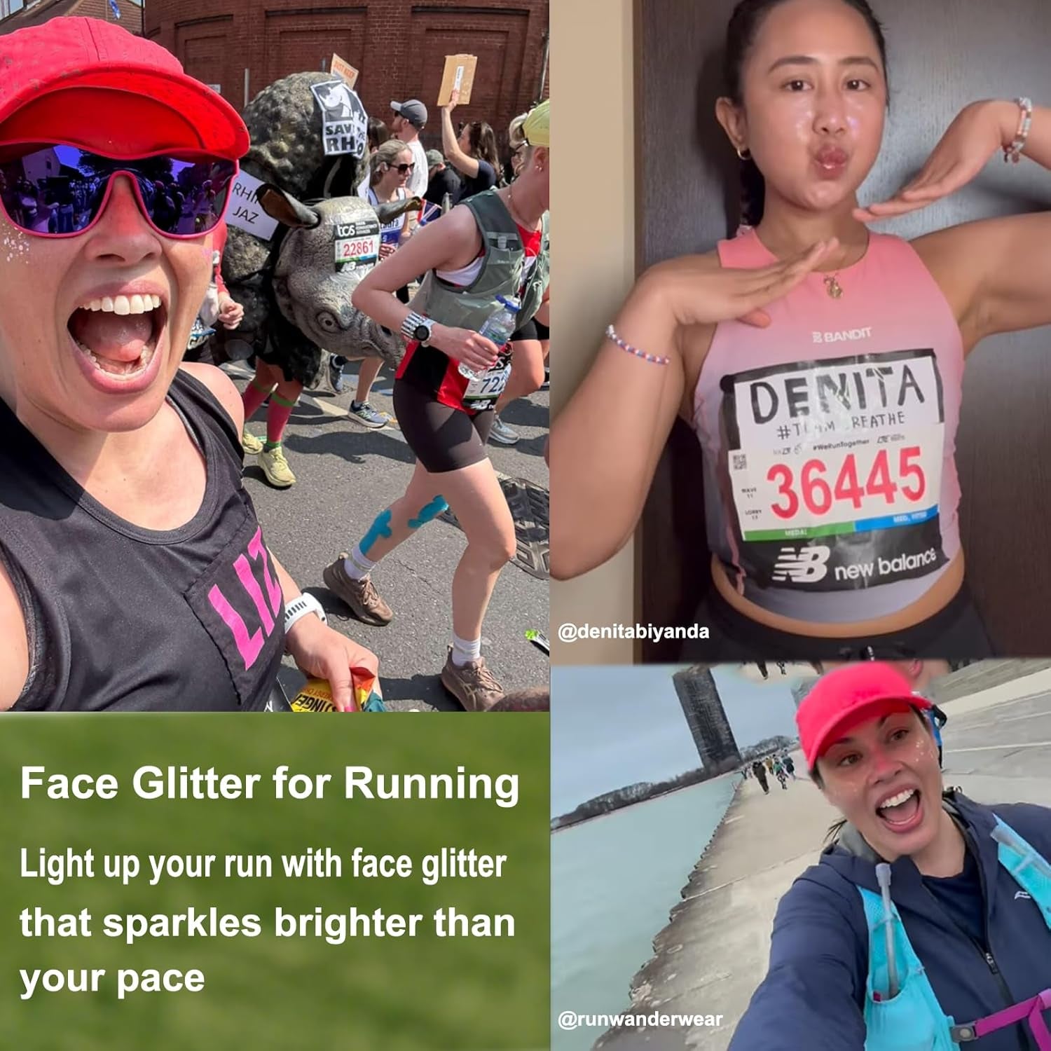- Easy to Use --- MEICOLY face glitter gel is formulated with self-adhesive material that is sticky, so you don't need to use glue when using it,save your makeup time.Great face glitter for running,giving you a sparkle look even at a long lasting running event.MEICOLY face and body glitter can be used directly in the body wherever you want to decorate,perfect for rave outfit accessories. Apply to hair and body with fingertips or brush