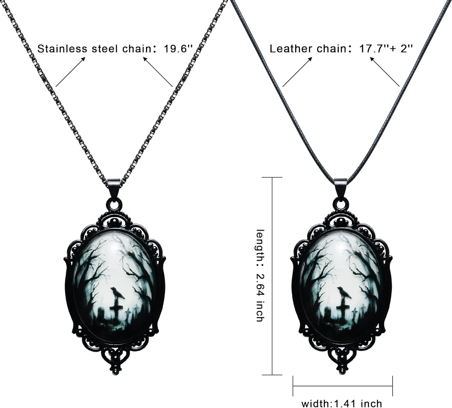- Witch Accessories: The raven cross pendant necklace comes with 2 different styles of chains.You can turn it into a gothic choker or a gothic necklace.These 2 styles are particularly well suited as unisex costume jewelry.