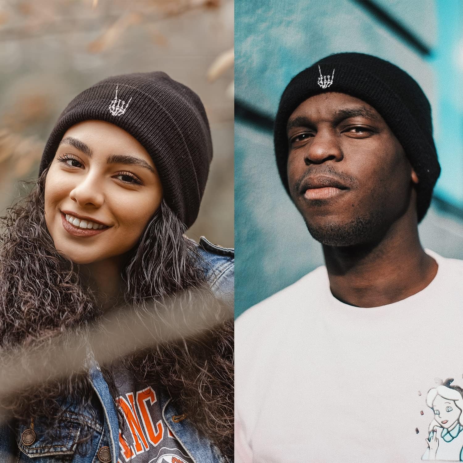 Halloween Skull Goth Knit Beanie Hats for Men Women Cool Emo Gothic Birthday Christmas Skeleton Gifts Presents Winter