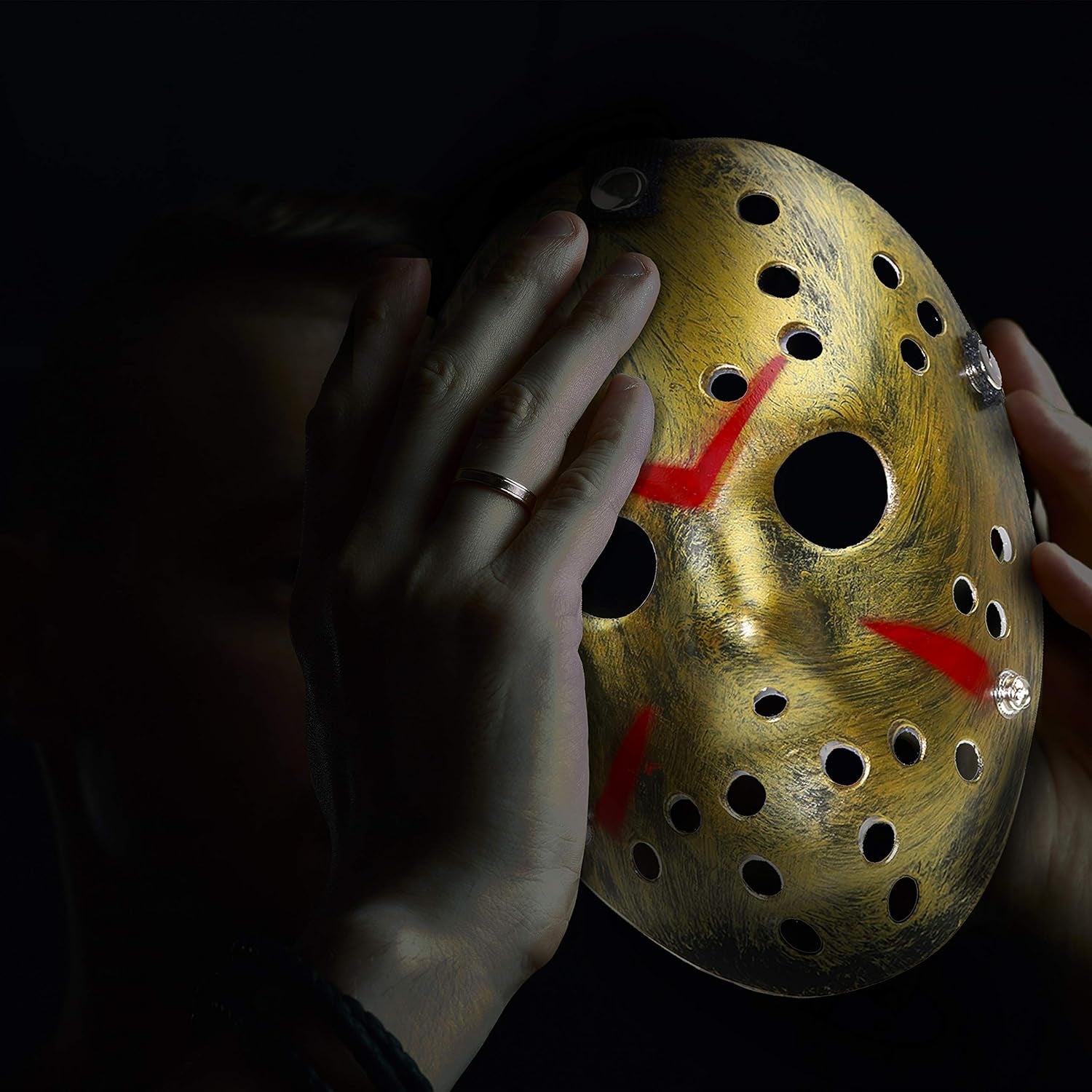 Horror Hockey Costume Mask Realistic Killer Costume Gold Mask Toys for Adults and Kids