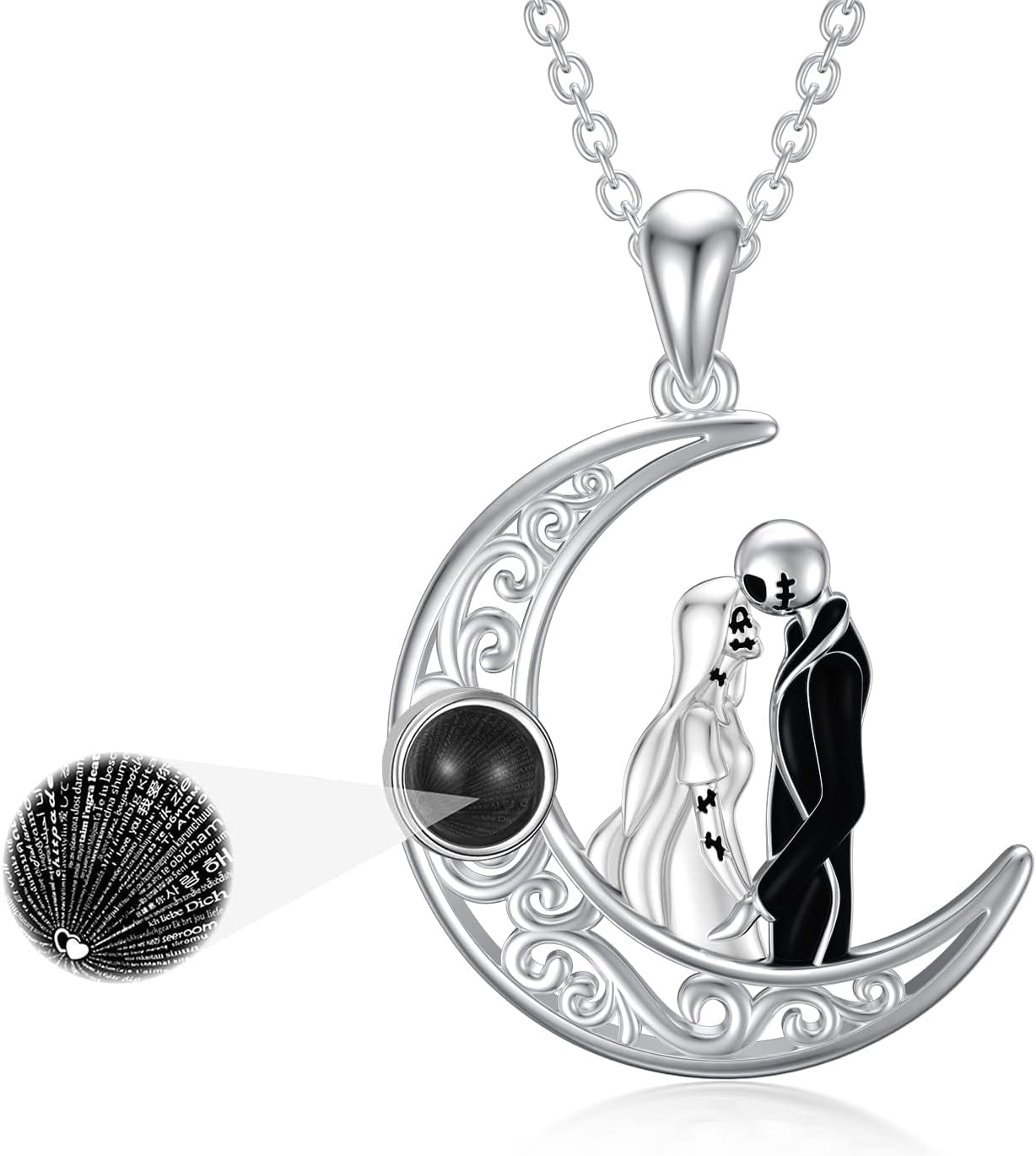 The Best Christmas Gifts for Her - I Love You to the Moon & Back - Skellington and Zero Pendant Necklace