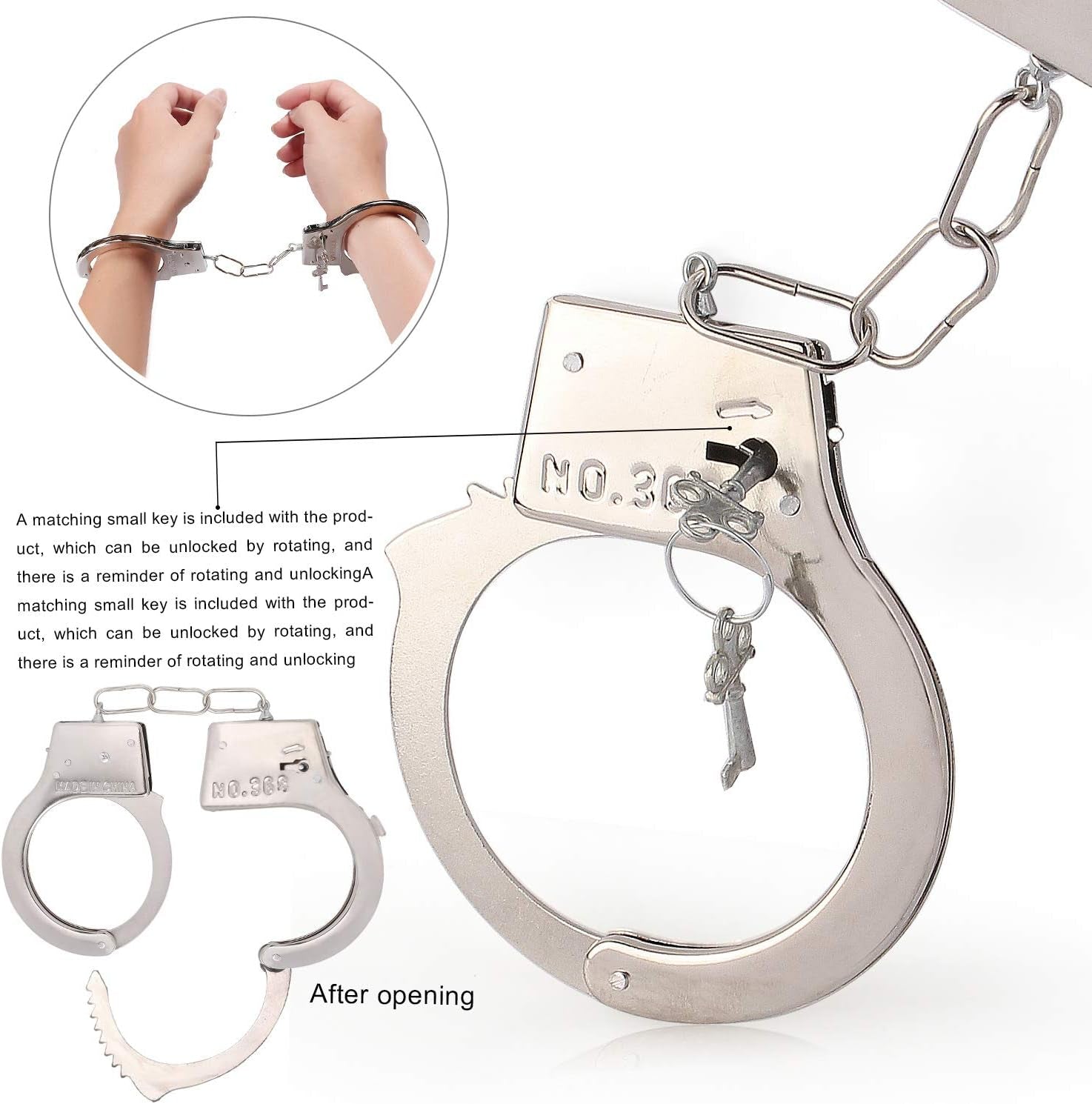 ★Handcuff - Stainless steel metal, with 2 keys