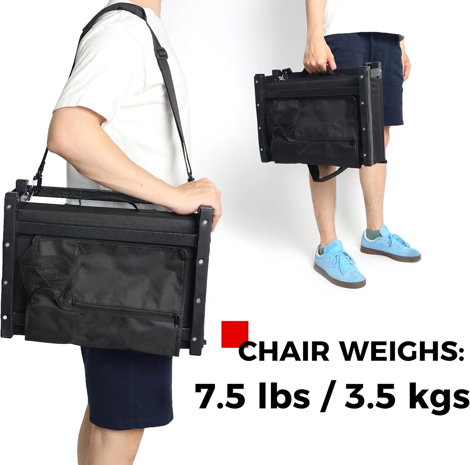 Heavy chair weighs: 7.5 lbs / 3.5 kgs.