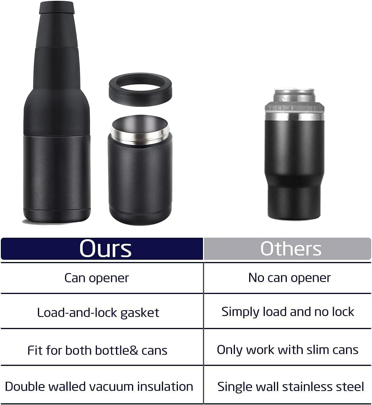 - 【Super Colder】Double-walled stainless steel material that keeps your drinks 20x colder than a standard can cooler, making your last sip the same refreshing cool as the first, With a built-in beer bottle opener, it makes your drinking more convenient.