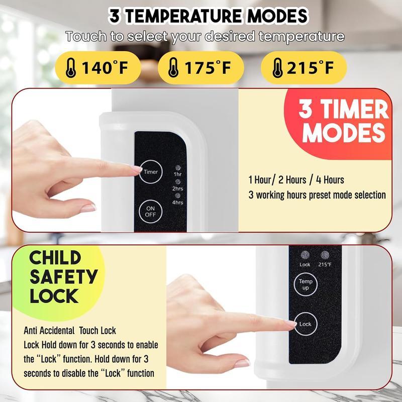 ④quick heating paired with an intuitive touchscreen: Adjust settings on the HD display. The anti-misoperation design and even heat distribution ensure safe, simple operation for all ages.