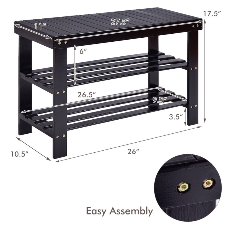 3-Tier Bamboo Shoe Rack Bench for Entryway