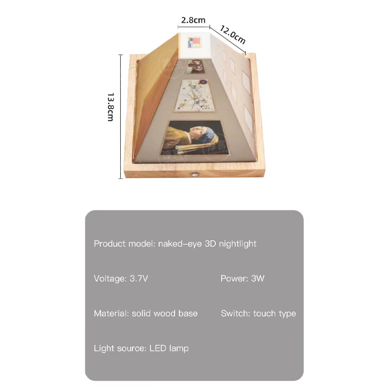 Main Materials: Wood+PVCSwitch type: TouchPower supply: Built-in battery 1200 mAhCharging port: Type-CLight colour: Three-colour dimmingShape: Geometric three-dimensional