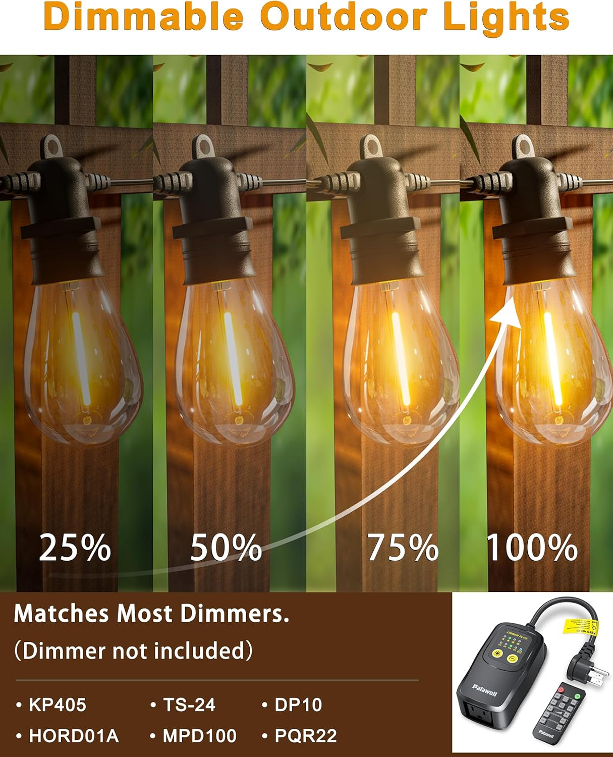 - Dimmer Compatible: Outdoor LED lights can be used with dimmer switch (not included) for greater mood lighting flexibility and soft glow. 2700k Warm white color looks comfortable, creating perfect atmosphere for a birthday party, family reunion, or wedding reception