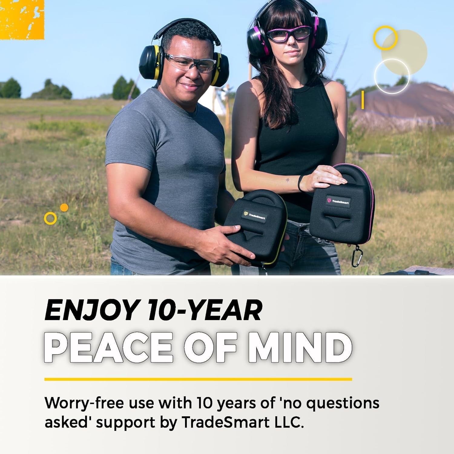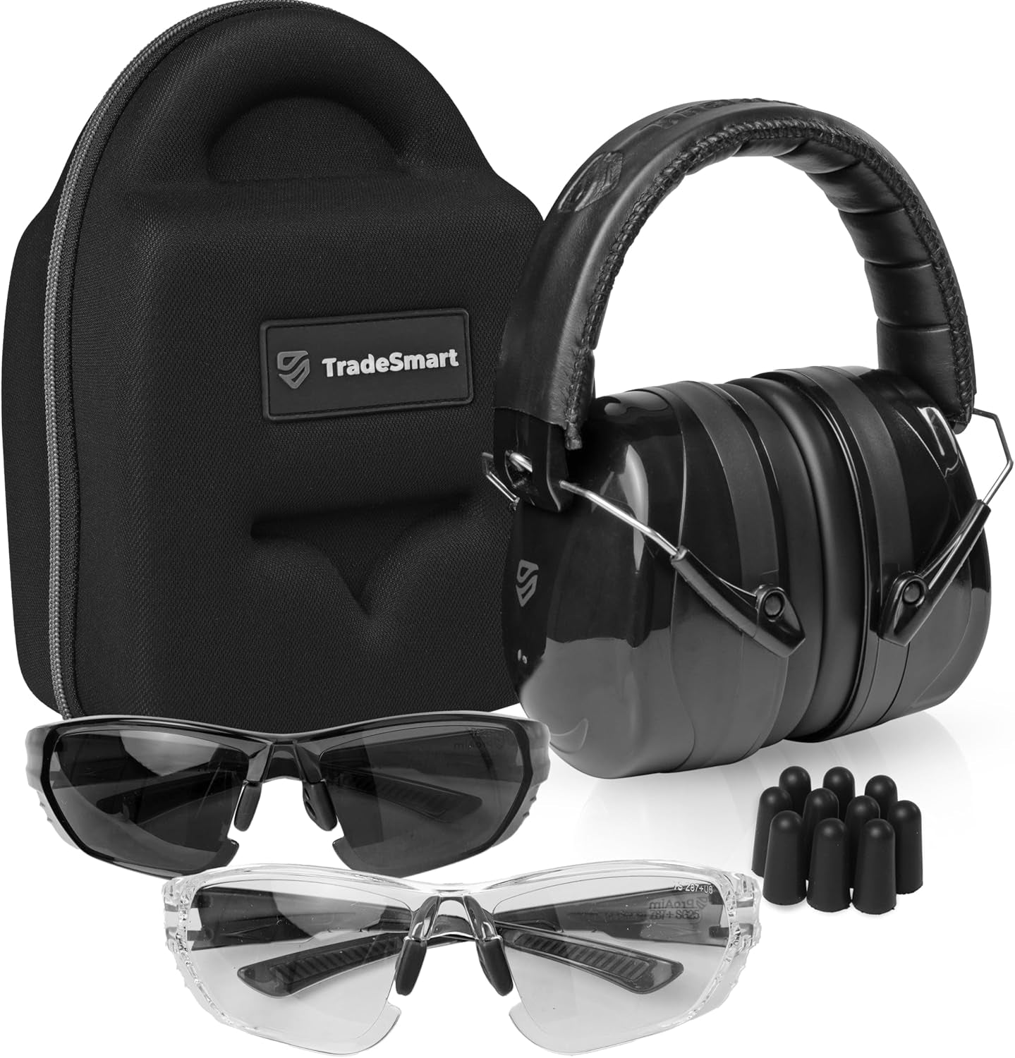 Conserve your hearing and protect your eyes while at the shooting range, or when out hunting with this combination set-up from Tradesmart. It provides high-level ear protection and wrap-around shielding for your eyes. Click Add to Cart now to protect yourself with what other shooters are using, too. Where 100% Focus Brings Results Tradesmart Built Trade Tough concentrates all its attention on shooting range ear and eye protection. With a large selection of different pack combos for shooters who prefer ear plugs or muffs, and their glasses clear or tinted, and with or without emergency first aid. Having 1,000s of satisfied customers, Tradesmart has become a well-trusted and established brand. Good to Know Safety and Style available in vibrant pink or yellow Robust Carry Case tough to handle life on the road Padded Glasses comfort and added protection Comes with Lint-Free Pouch to protect your gun range glasses High-Spec Adaptability use for the lawn mower, industrial machinery, motor racing, and aviation Impressive Ear Protection Combined NRR 38 level shielding while at the shooting range or when hunting Can I Wear These Shooting Glasses All Day? Yes, they have a non-rigid design to ease pressure on the temples, with a soft rubber nose guard, and a wrap-around lens to not impair vision, keeping you fresh and alert throughout the day Do They Fit Different Sized Heads? Yes, their flexible construction means that a comfortable fit is assured for a large variety of head sizes, can be used by older children, too. Buy with confidence, you’re covered by our 100% Risk-Free Guarantee. Click Add to Cart now to protect yourself with what other shooters are using, too.