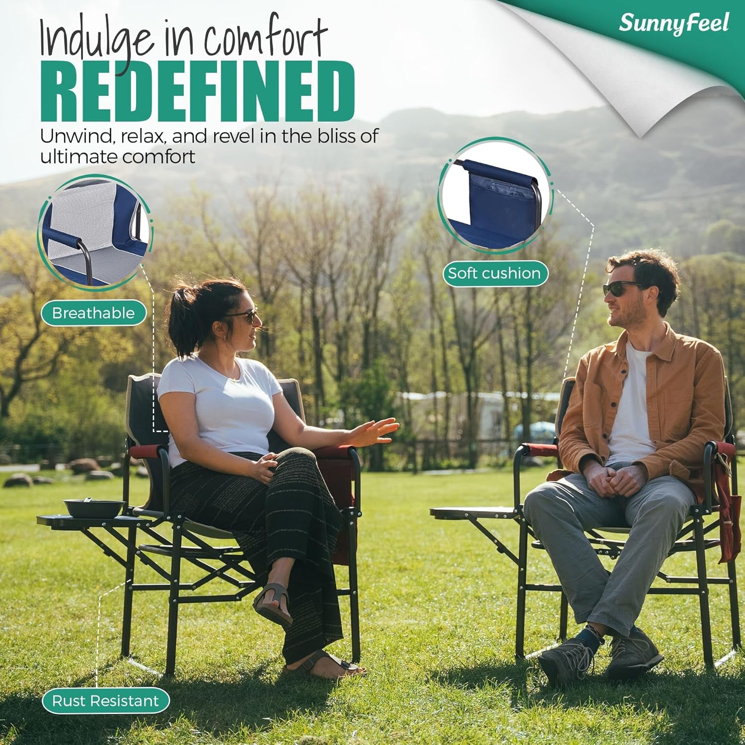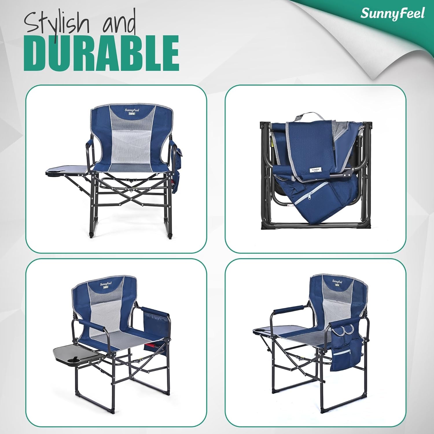 - A Camping Director Chair that is Built for Anywhere: Use it as a camping chair, folding chair, lawn chair, travel chair, beach chair and more. Suitable for outdoor adventures, tailgating, fishing, backpacking, beach, picnic, sport games, car travelling, or just put it in the backyard, cabin, balcony, patio lawn parties. The SunnyFeel camping chair is an essential to add to your camping accessories.