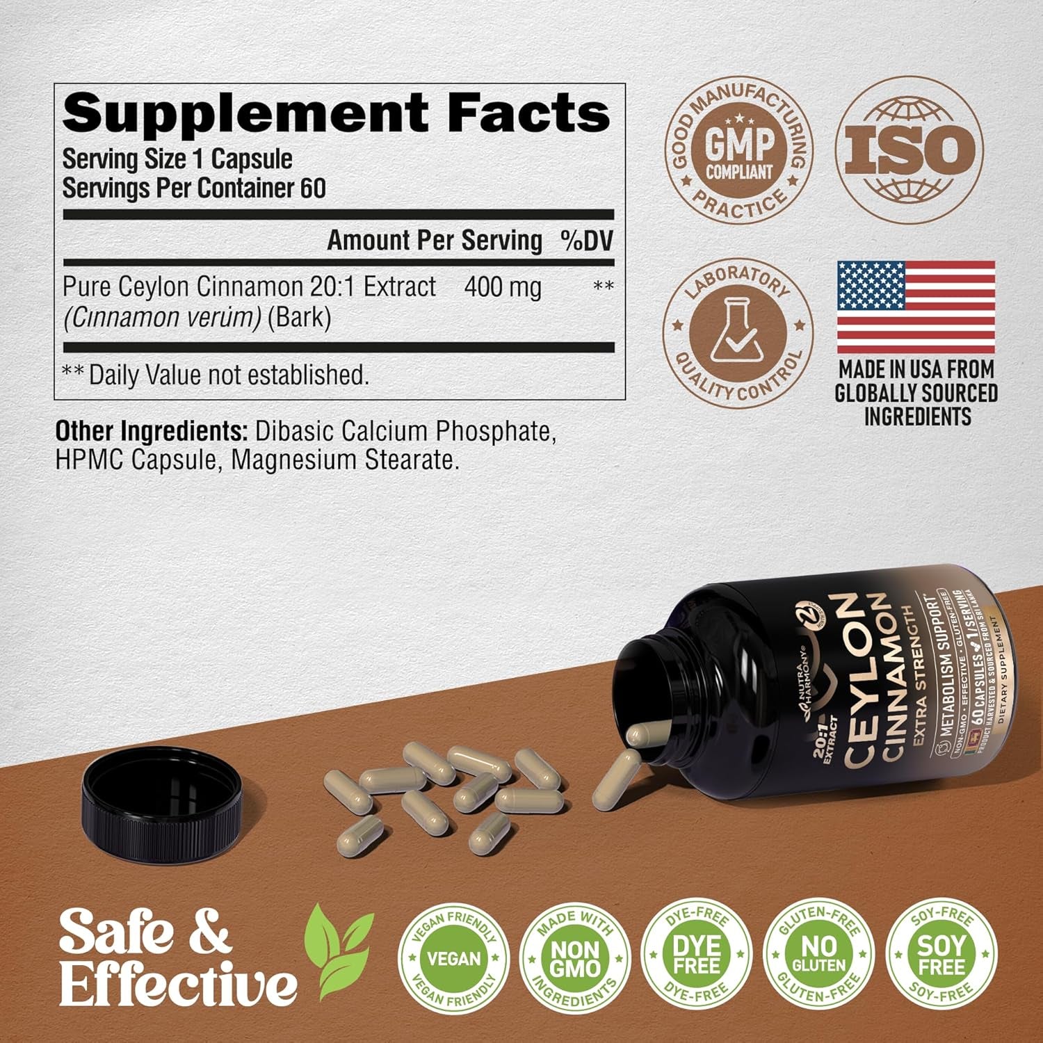 - Wholesome Metabolism Support — Boost your body's defense system for overall wellness. Enhance metabolism & boost energy naturally with ceylon cinnamon capsules! Our carefully formulated blend supports healthy metabolism, providing sustained energy and caring for your heart health. Feel revitalized and confident!