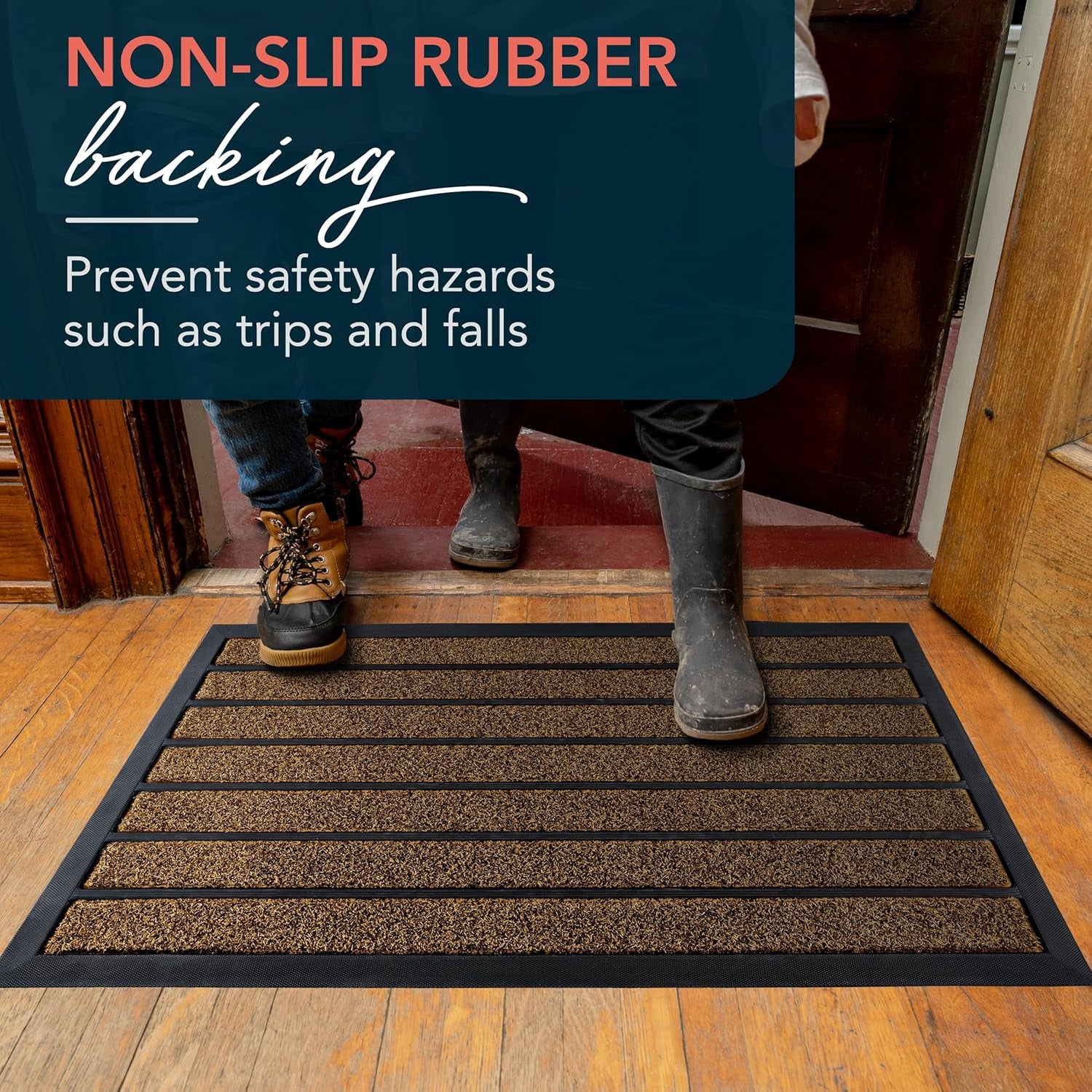 Extra Durable Door Mat - Dirt Trapping Outdoor Welcome Mats - Non-Slip Outdoor Indoor Entrance - Low Profile Front Doormat (30" X 17", Bright Brown)