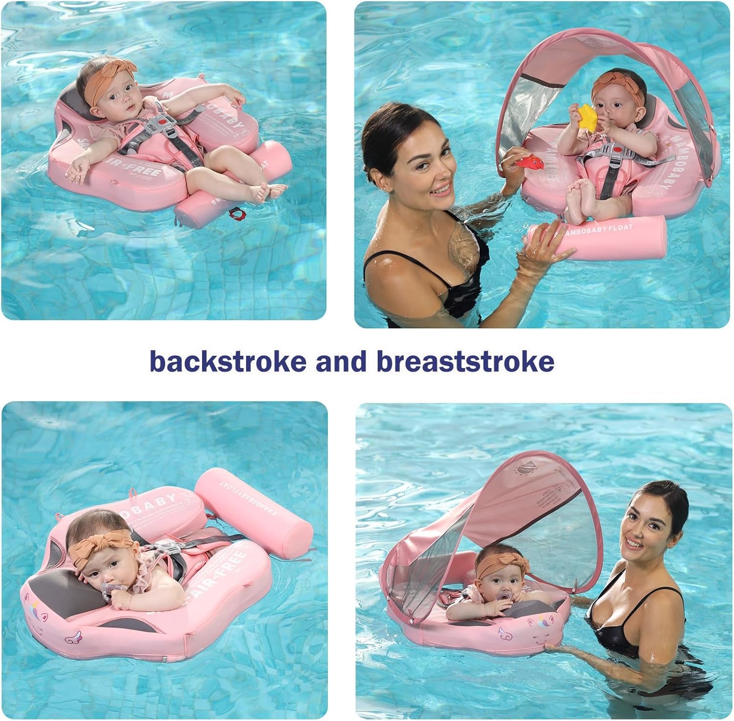 - ❤【Swim ways】 Backstroke and breaststroke. Adjustable size, best float to play and learn swim. Baby can lay on stomach with 40°angle head support above water to kick and splash, or lay on back to relax and play