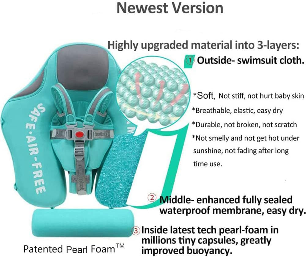 - ❤ 【Mambobaby float】Newest: 1. Add detachable tail to avoid back flip over. 2. Bigger adjustable size, better for big baby of 3-24 months. 3. Three layers: OUTSIDE--soft swimsuit cloth. MIDDLE--enhanced fully sealed waterproof membrane, easy dry. INSIDE--latest tech pearl foam, greatly improved buoyancy