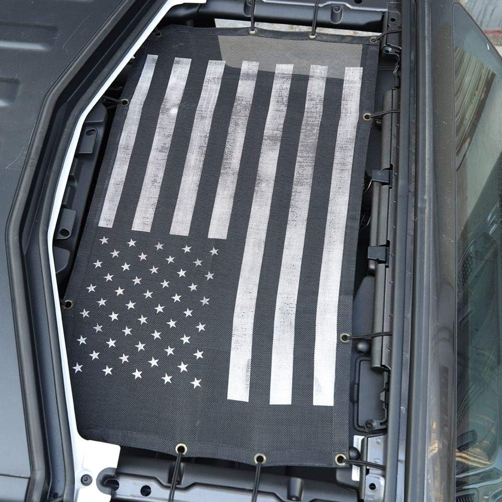 - RUGGED CONSTRUCTION - High quality polyester with double-sewn edges and metal grommets provides long-lasting protection from sun and everyday wear-and-tear. JKU sunshade resists stains and fading to give your car a customized look.