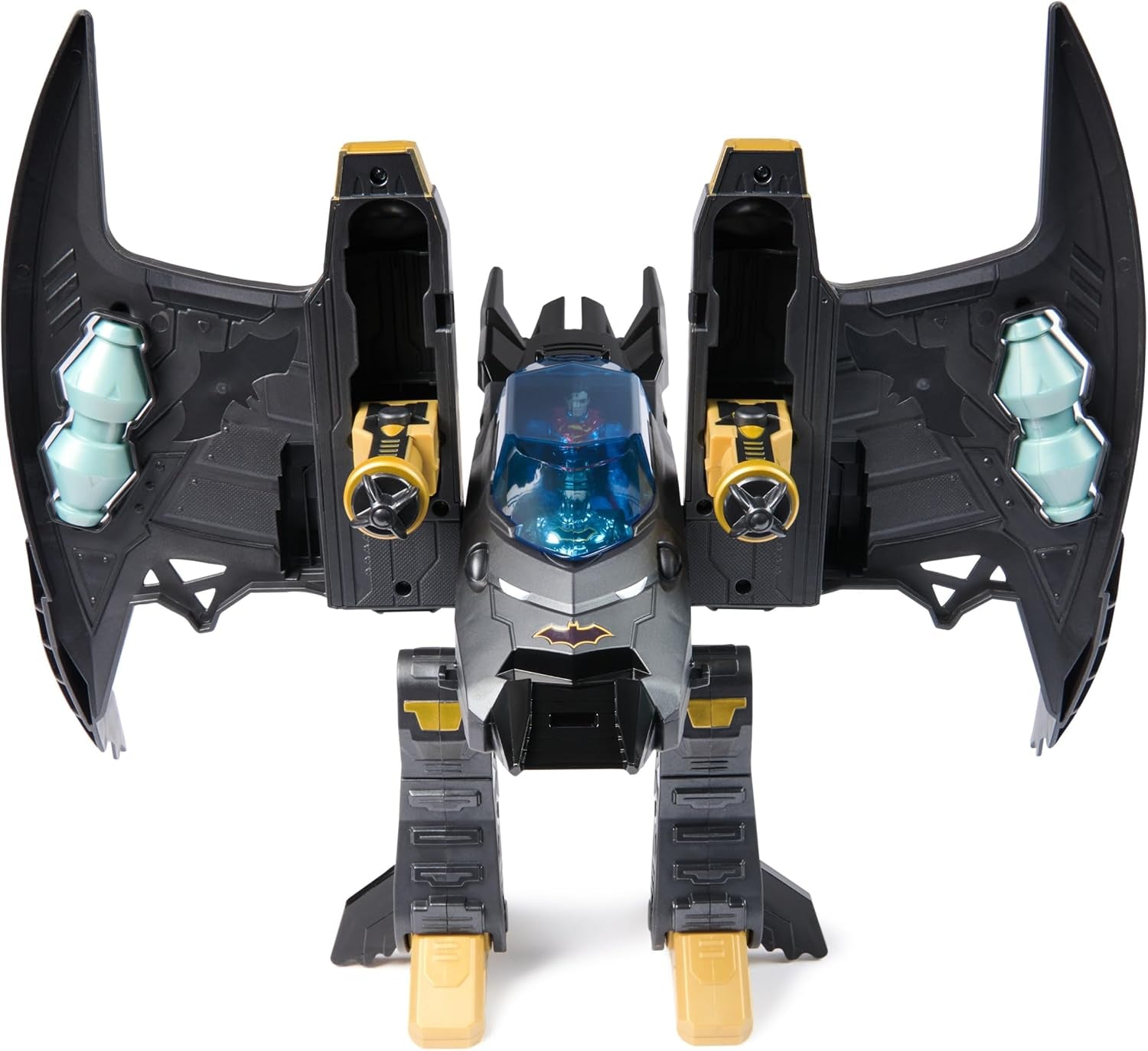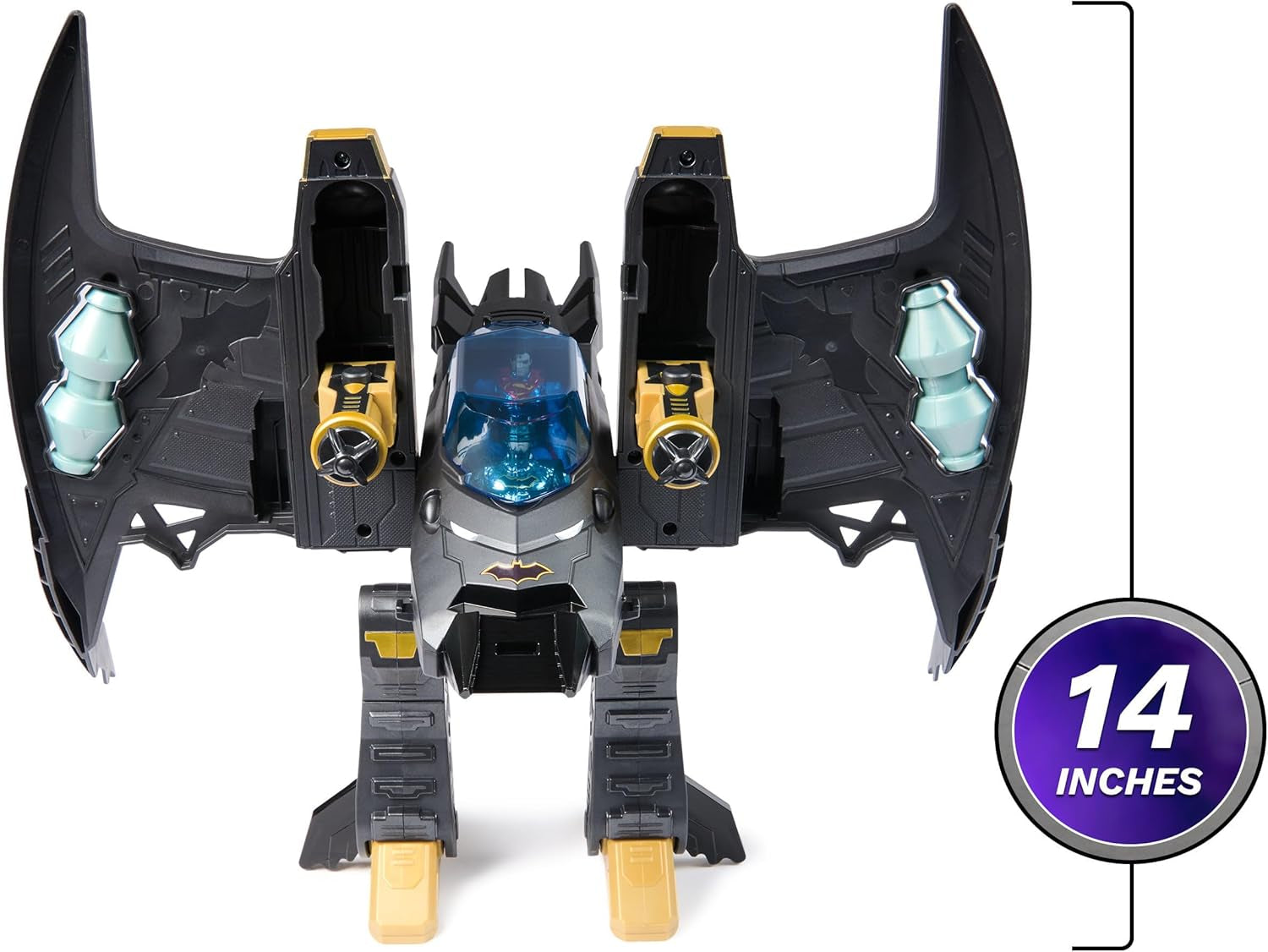 - 2-IN-1 BATWING TO MECH TRANSFORMATION: Dive into double the action with the Metal Force Batwing that spans 15.5" wide that morphs into a towering 14-inch tall Mech Mode robot