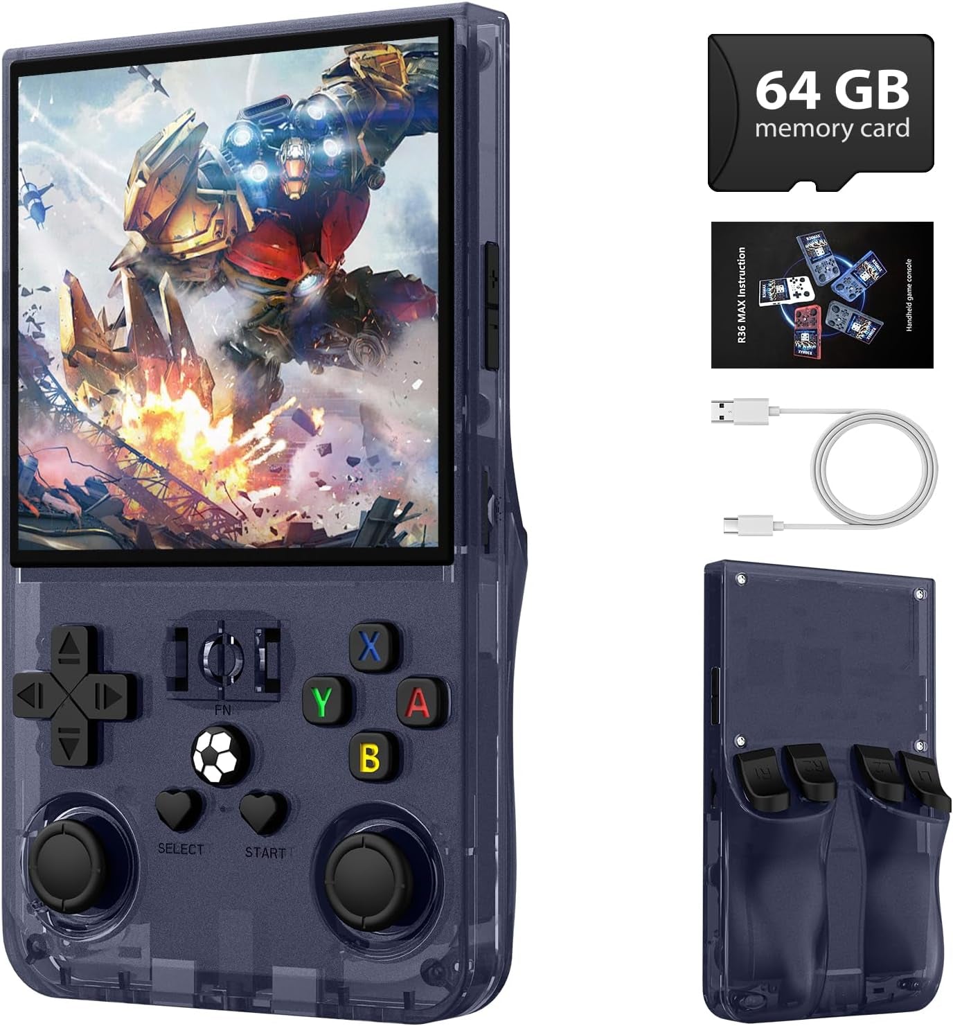 - Generous 64GB Built-in Storage: With 64GB of preloaded storage, this preloaded game console holds thousands of retro favorites. Dive straight into thousands of classic games without worrying about space, the R36MAX handheld game console ensures fast loading times and uninterrupted gameplay, so you spend less time configuring and more time playing.