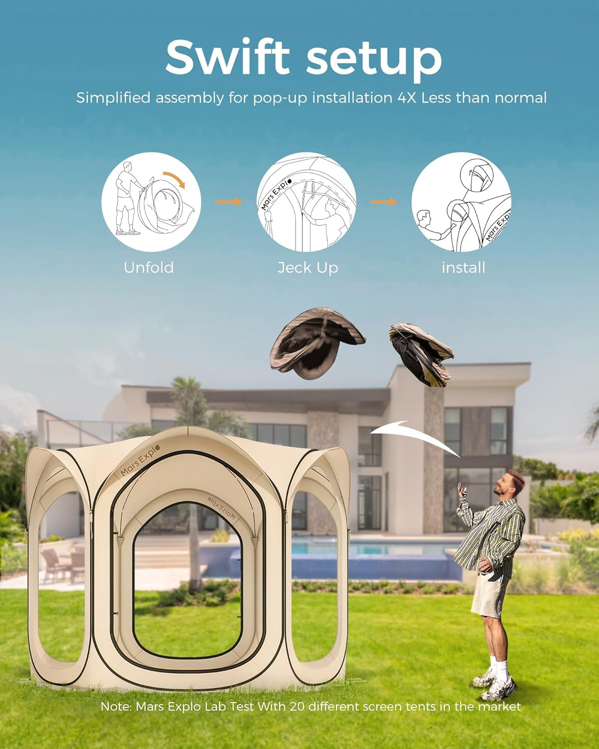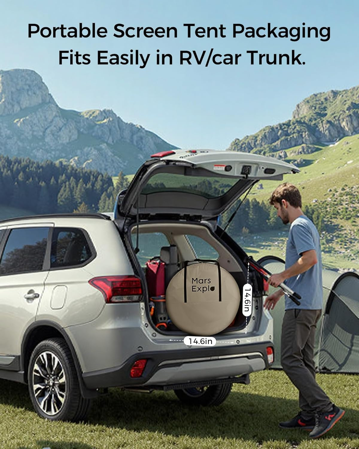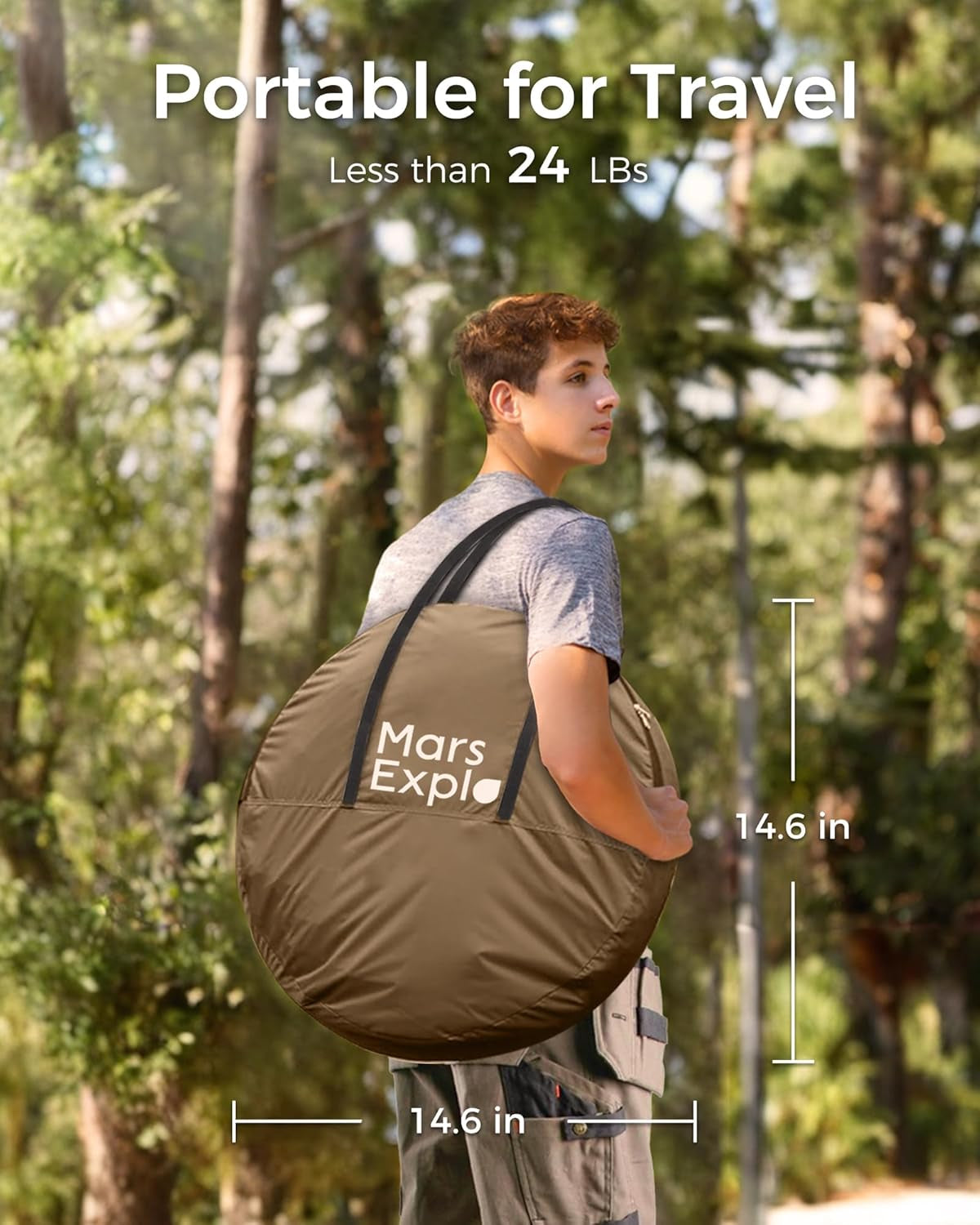 - ๐๐จ๐ฉ-๐ฎ๐ฉ & ๐๐ณ๐๐ซ๐ญ๐ฅ๐๐ฌ๐ฌ Setup & Storage๏ผโ 1-Minute One-Person Instant Setup: Patented spring-loaded mechanism allows quick deployment by a single person. Collapses to compact dimensions (30.7x3.9x30.7 inches โ roughly the size of a laptop) with included carry bag for portability.
