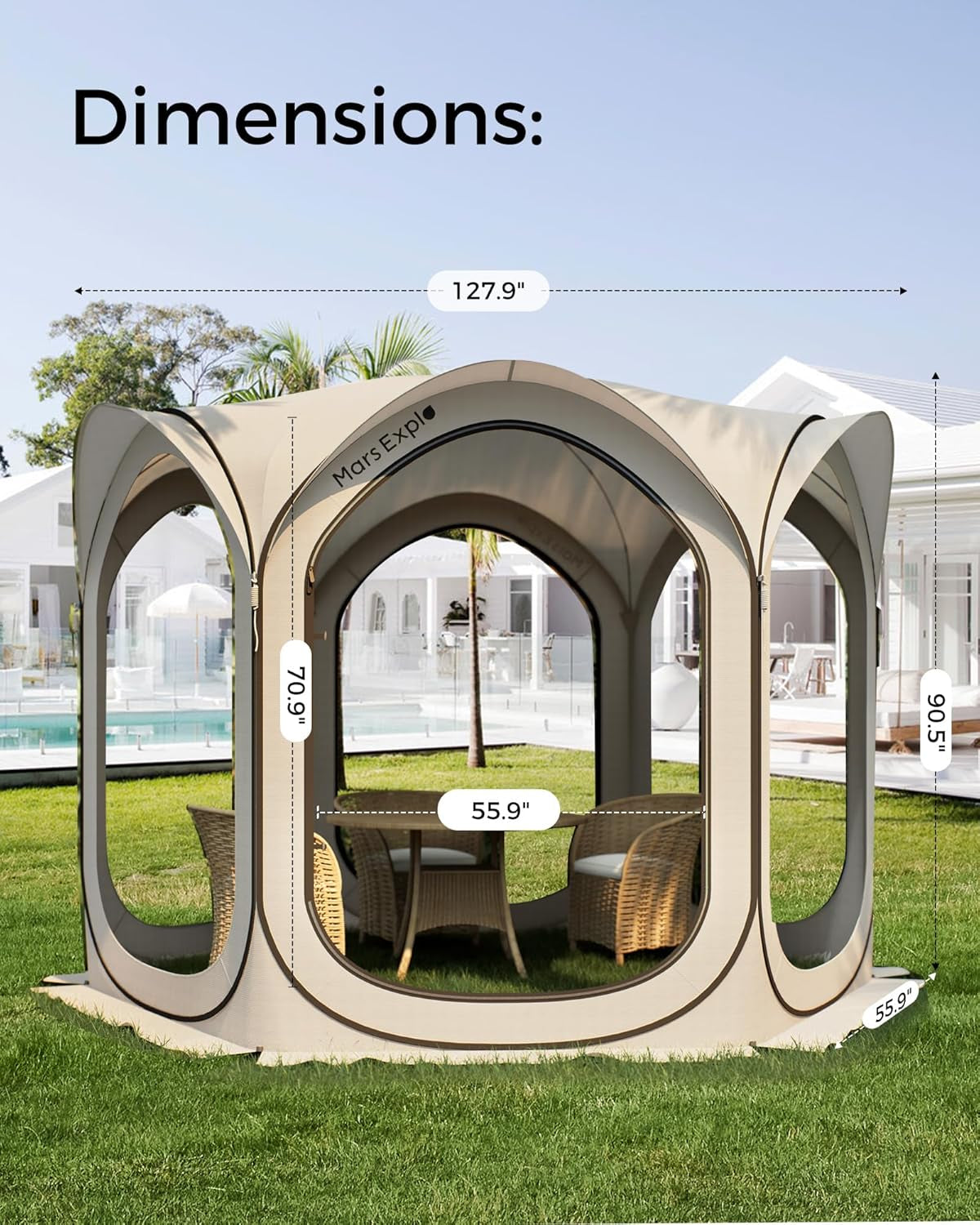 - Maximize Outdoor Enjoyment๏ผโ Day/Night Multi-Scene Use: Top hook for hanging lanterns and optional LED light strip for ambient lighting. Ideal for patio barbecues, garden parties, RV trips, kidโs play areas, and more. (Lamps sold separately).