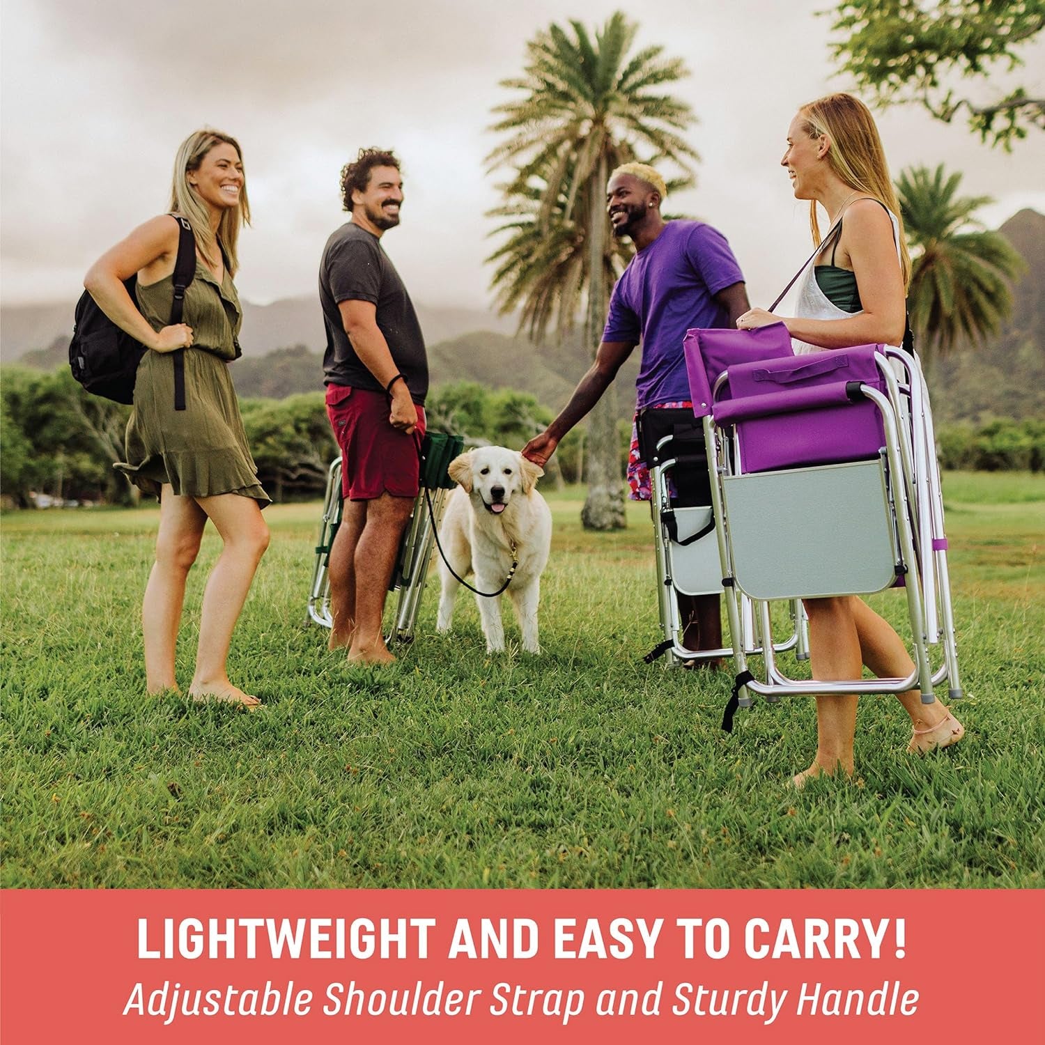 - Effortless Portability: No more awkward carries! This portable travel chair features an adjustable shoulder strap plus two handles for easy transport. Take this folding camping chair effortlessly to the beach, park, campground, or lawn – anywhere!