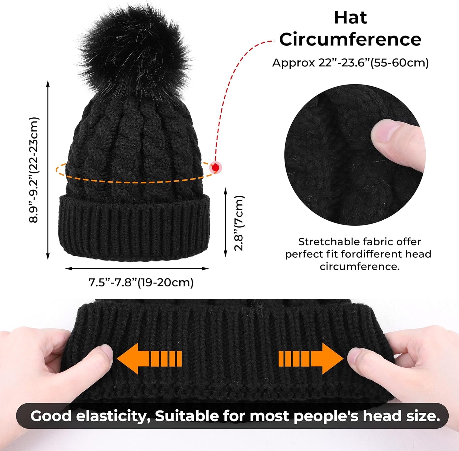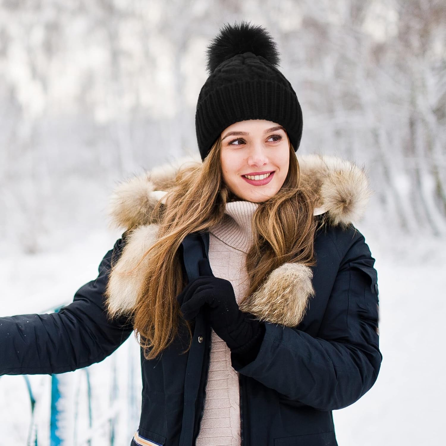 Women'S Winter Soft Knit Beanie Hat with Faux Fur Pom Pom Warm Skull Cap Beanies for Women